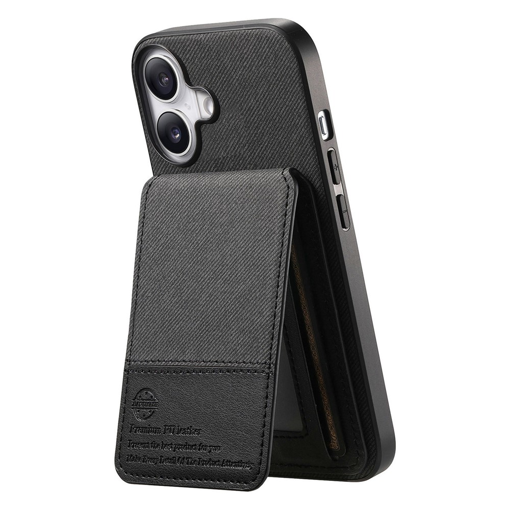 For iPhone 16 Case Cloth Texture Leather + PC + TPU RFID Blocking Phone Cover with Card Holder – Black