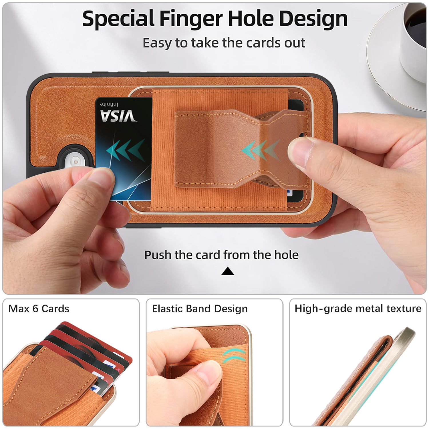 - Detachable Design Combines a card holder, kickstand, and phone case in one sleek design, with the card holder accommodating up to six cards. The card holder and phone case can be used separately.