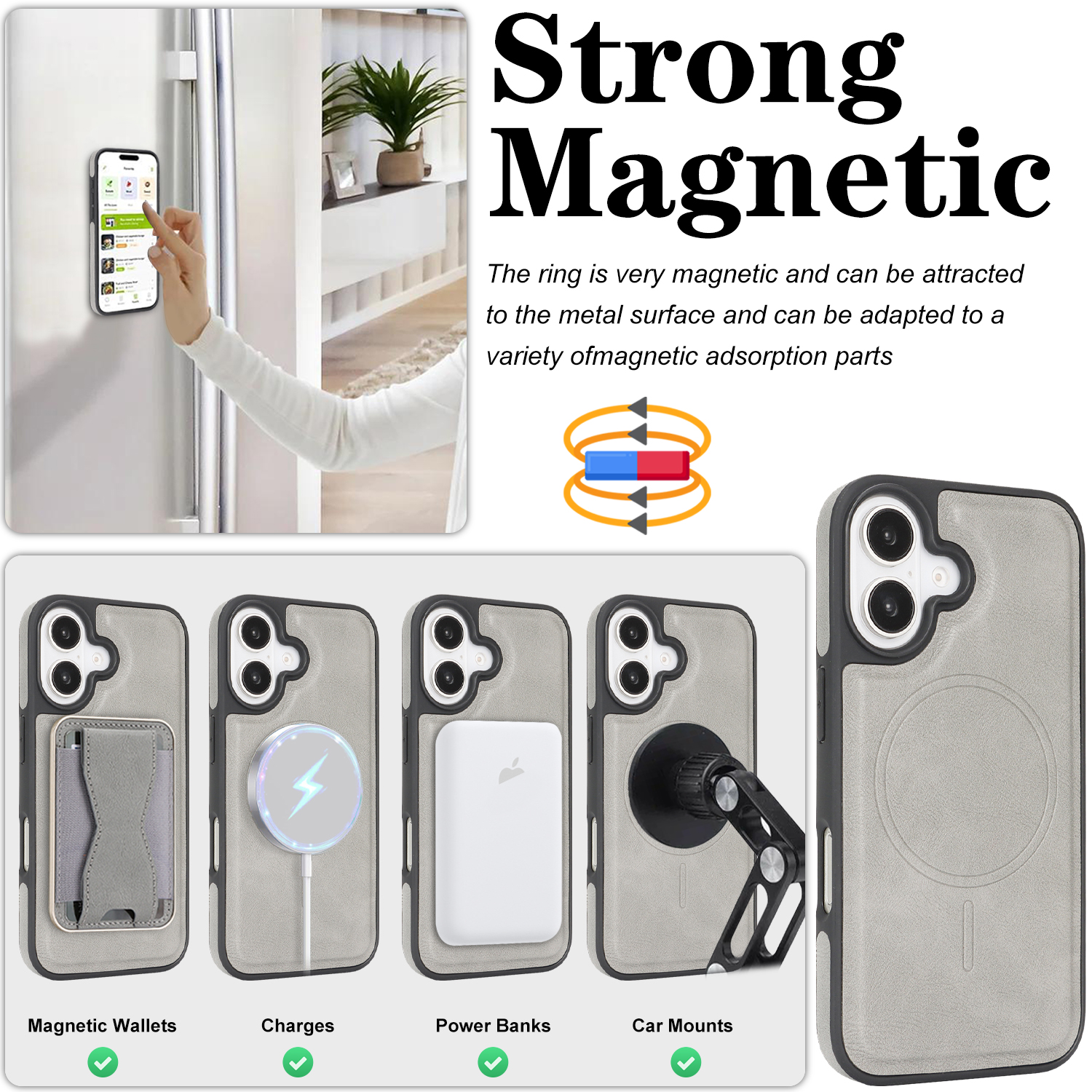 - Compatible with MagSafe Supports magnetic accessories and wireless charging with strong N52 neodymium magnets in both case and card holder.