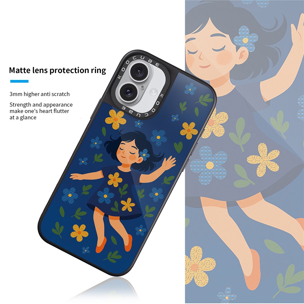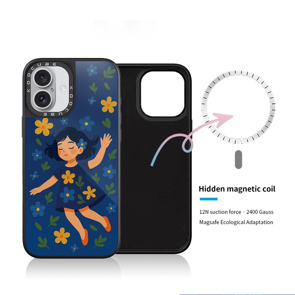 • For iPhone 16 Case Compatible with MagSafe Pattern Printing TPU PC High Aluminium-silicon Glass Phone Cover - Style J