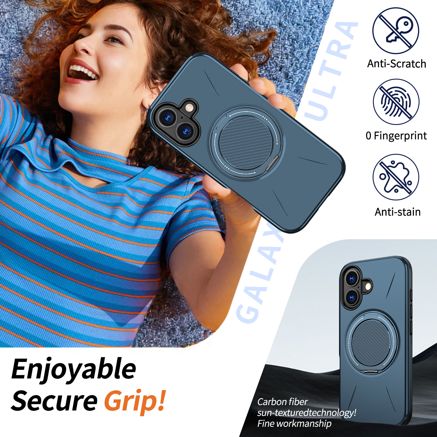 For iPhone 16 Case Compatible with MagSafe TPU + PC Back Cover with Rotating Kickstand – Blue