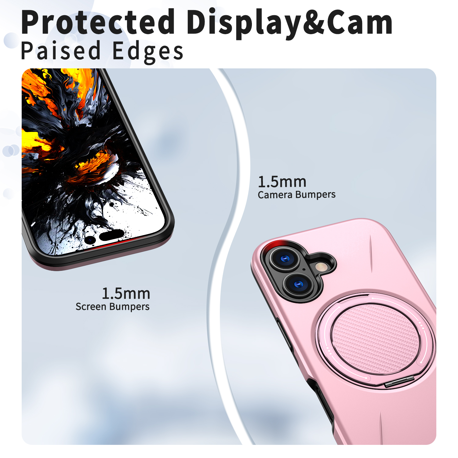 - Camera Protection Features a 1.5mm raised bezel around the camera lenses, offering comprehensive protection without compromising photo quality.
