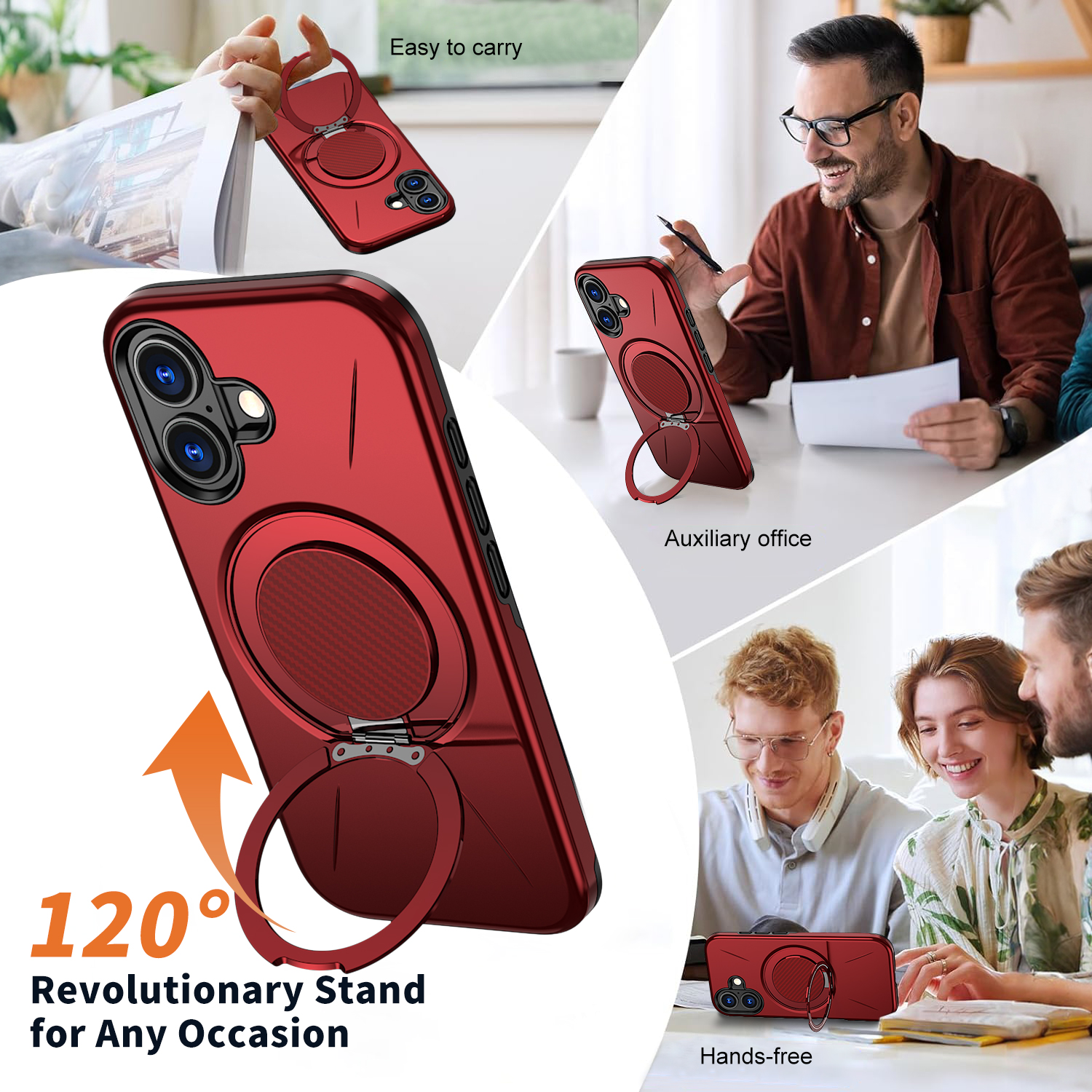 For iPhone 16 Case Compatible with MagSafe TPU + PC Back Cover with Rotating Kickstand – Red