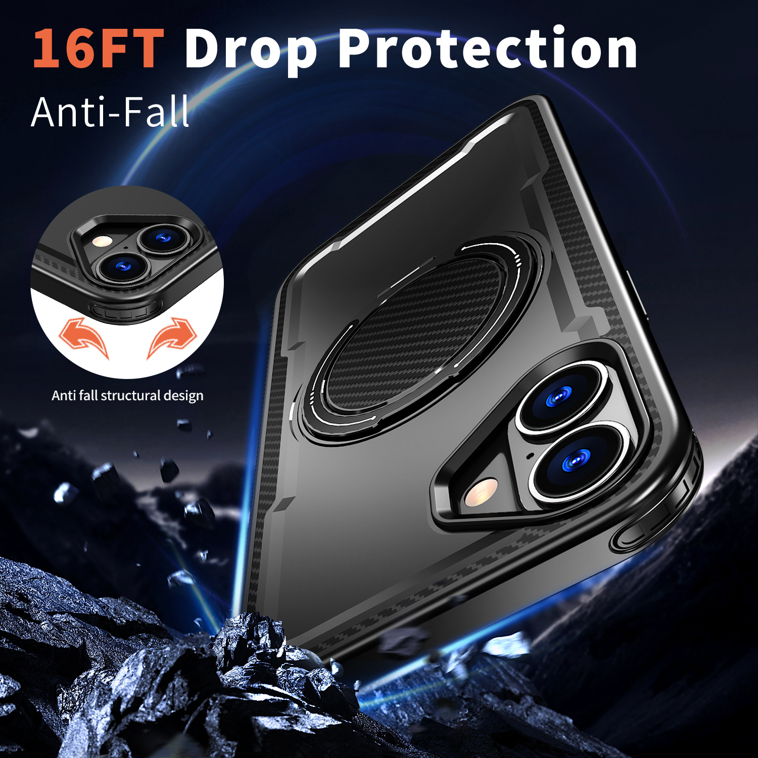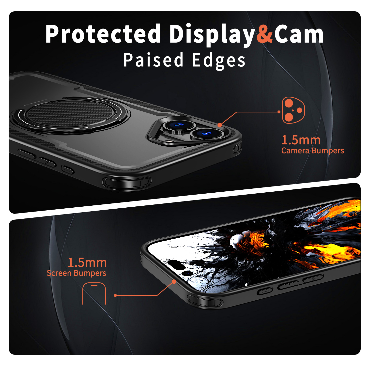 For iPhone 16 Case Compatible with MagSafe TPU + PC Phone Cover with Damping Rotating Stand – Black