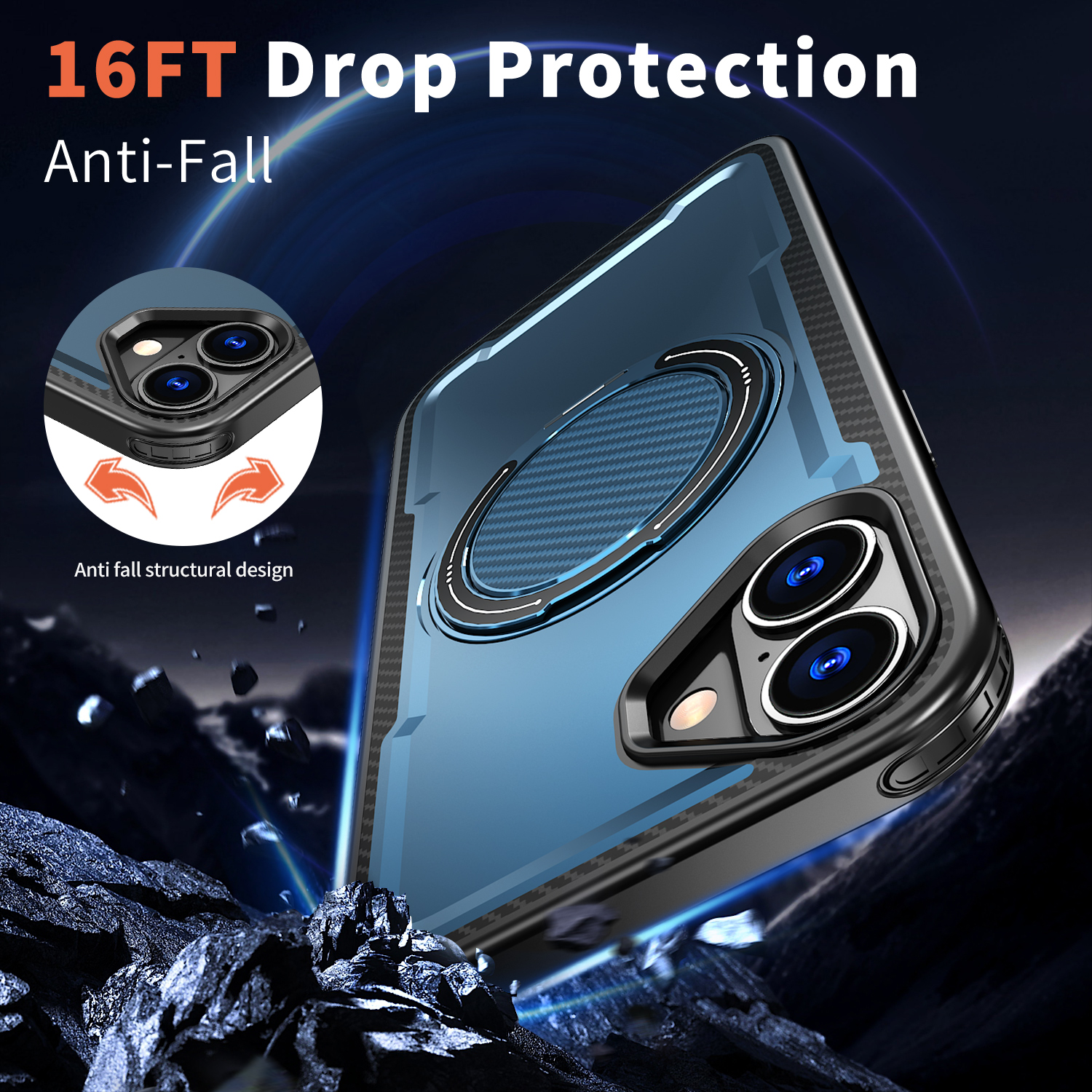For iPhone 16 Case Compatible with MagSafe TPU + PC Phone Cover with Damping Rotating Stand – Blue