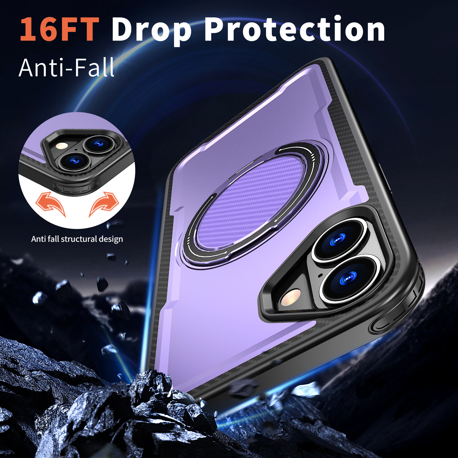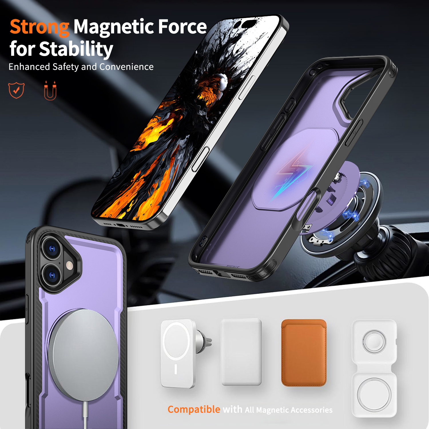 For iPhone 16 Case Compatible with MagSafe TPU + PC Phone Cover with Damping Rotating Stand – Purple