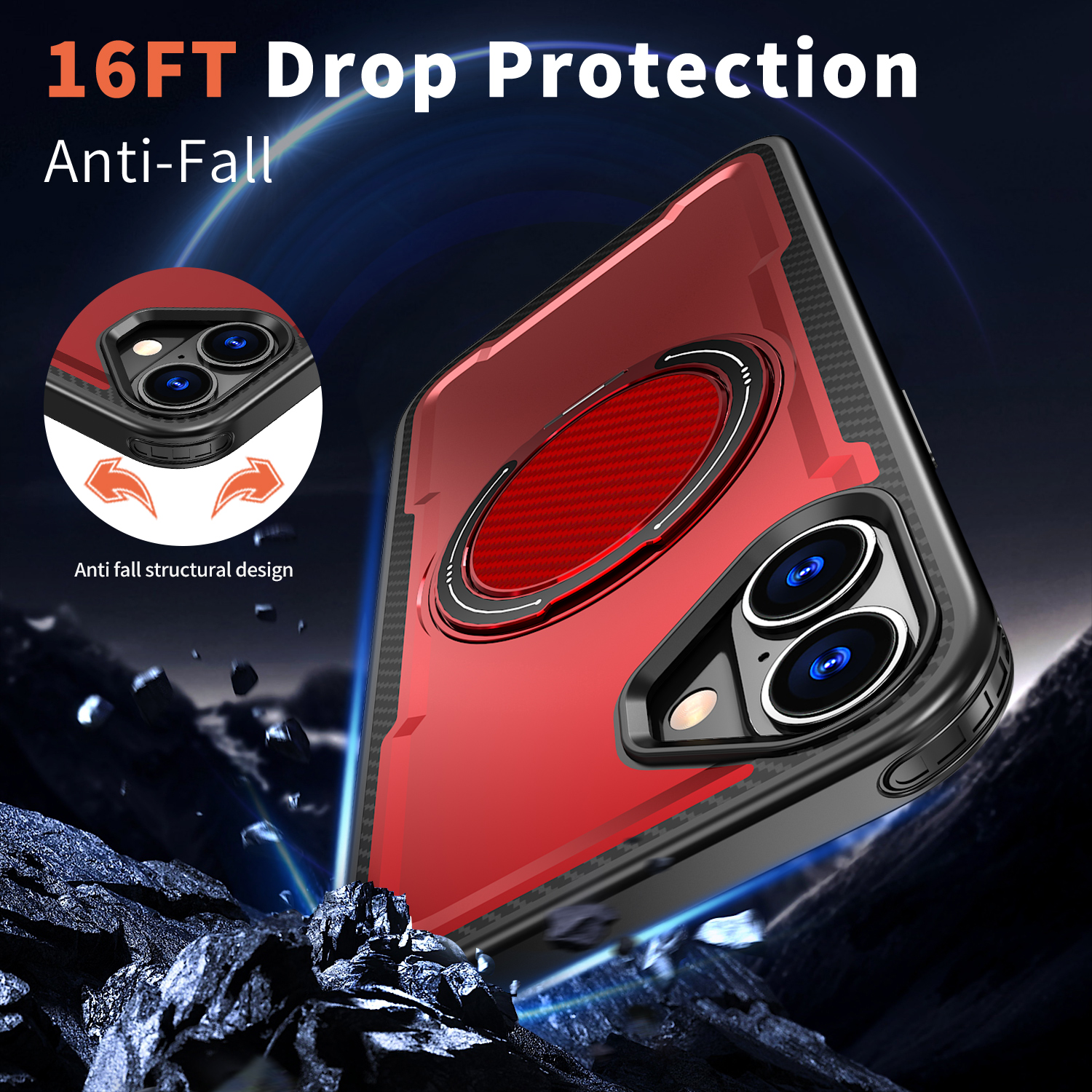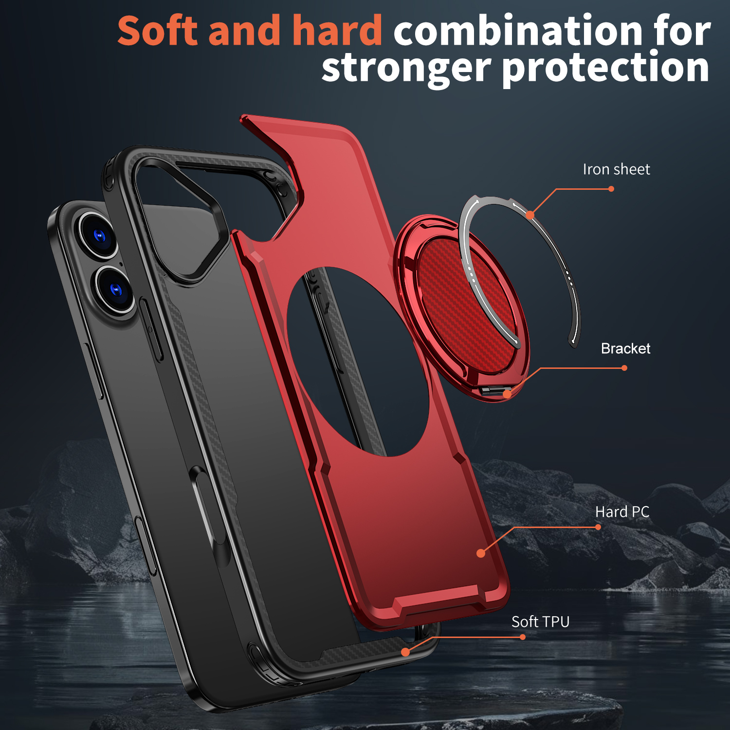 For iPhone 16 Case Compatible with MagSafe TPU + PC Phone Cover with Damping Rotating Stand – Red