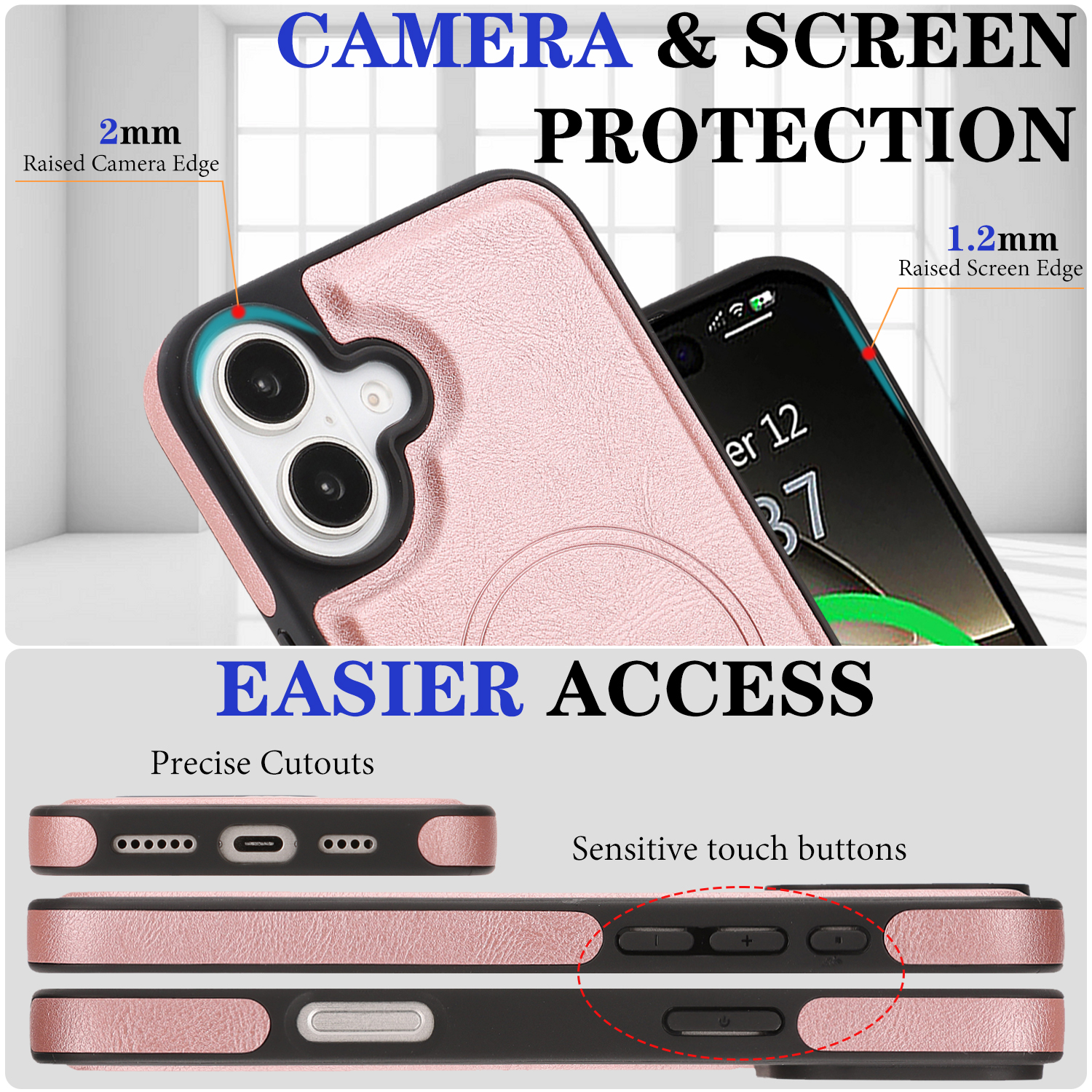 - Enhanced Screen and Lens Safety Raised edges provide 0.2mm protection for camera lenses and 1.2mm for the screen, safeguarding against surface contact and potential damage.