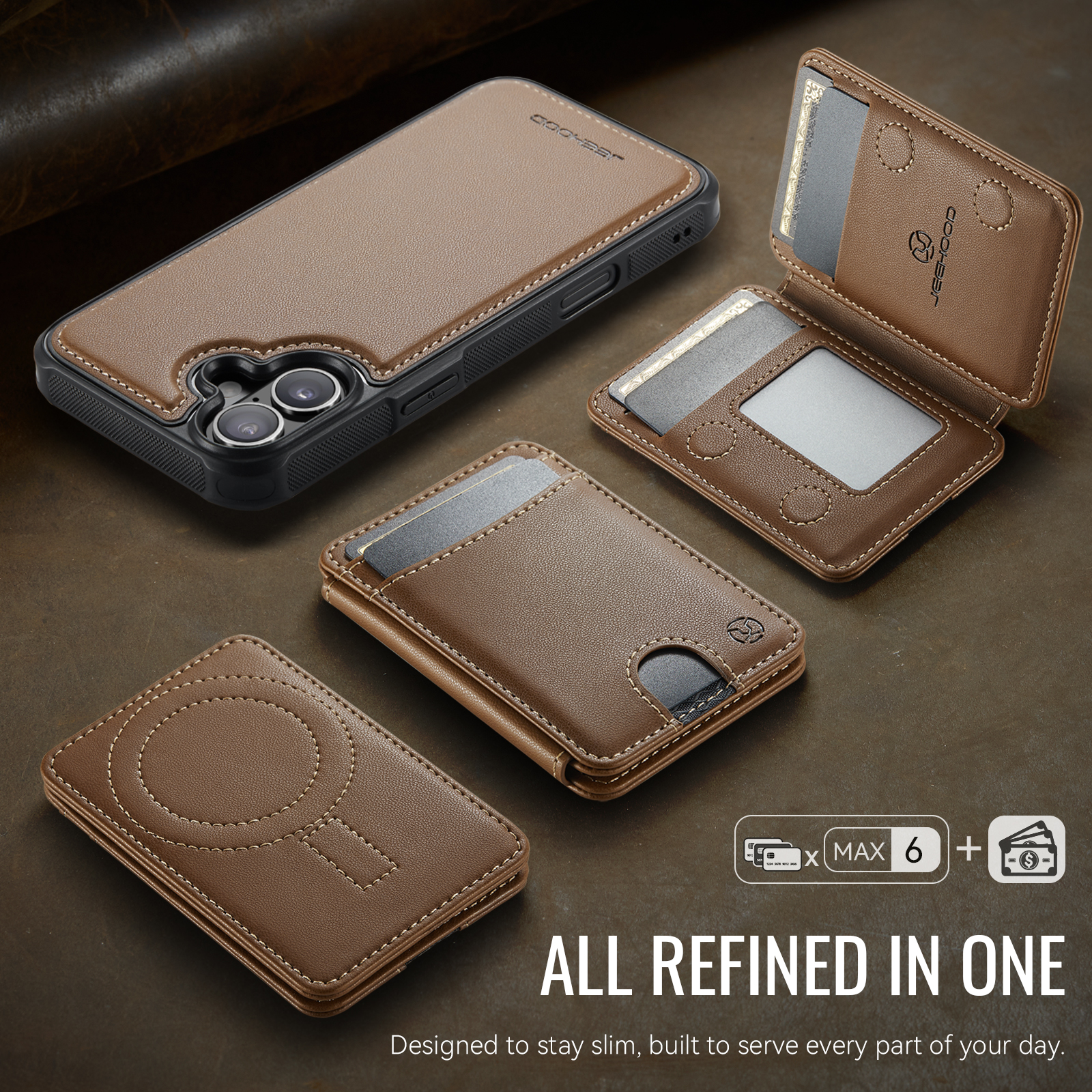- Multi-Card Design Features 2 card slots on the front, and 4 additional card slots (1 photo slot + 3 card slots) inside for maximum organization.