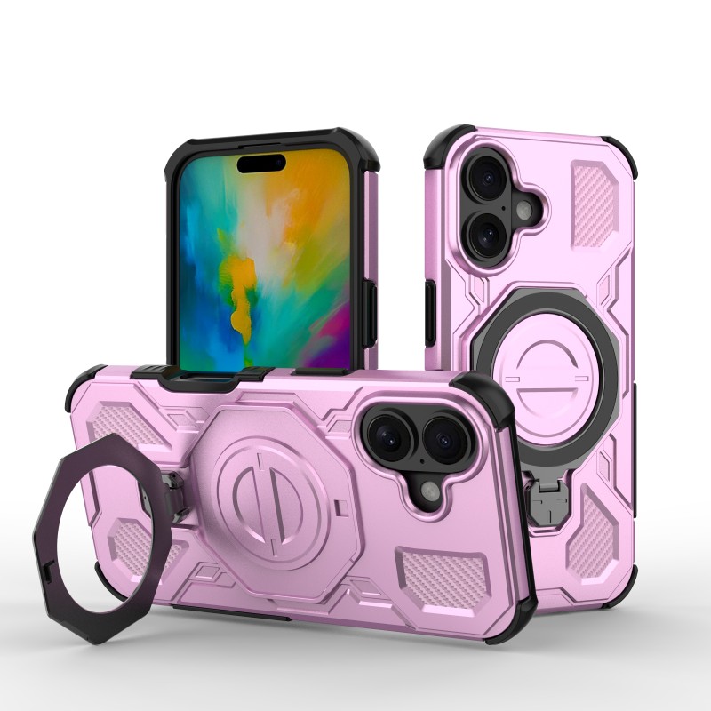 For iPhone 16 Case Kickstand with 2Pcs Screen Film WANLONFENG KJ Series PC TPU Phone Cover (Big Lens Hole) - Purple $16.95