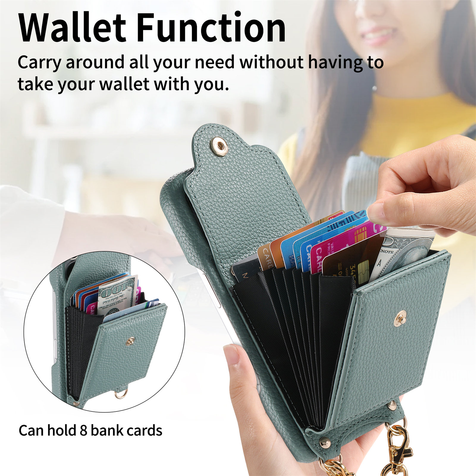 - Accordion Card Holder Built-in integrated accordion-style card slots allows you to conveniently carry essential cards and cash, eliminating the need for a separate wallet