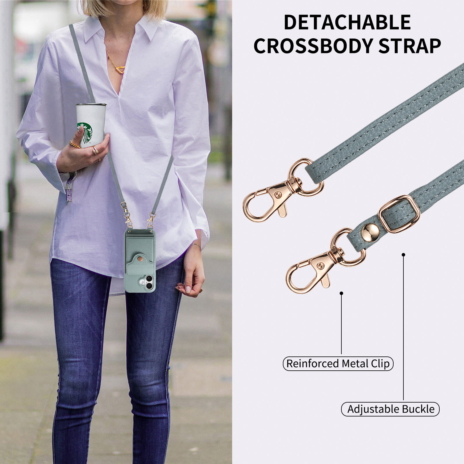 - Crossbody Strap Comes with a 1.2m long strap for crossbody wear, providing a fashionable and hands-free carrying option