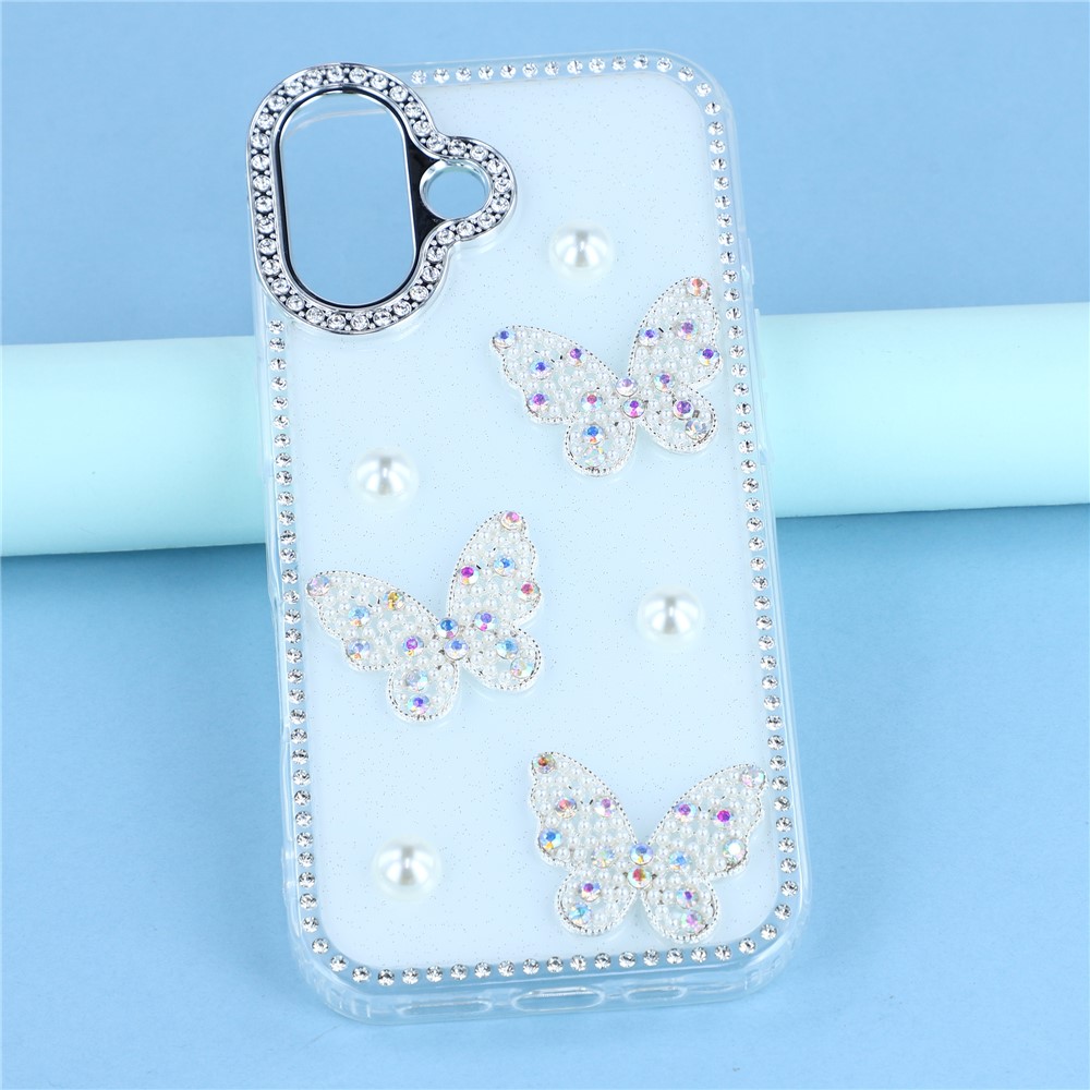 - Sparkling Design Features rhinestone detailing around the frame and camera, complemented by pearl butterfly bow decor for a stylish, eye-catching look