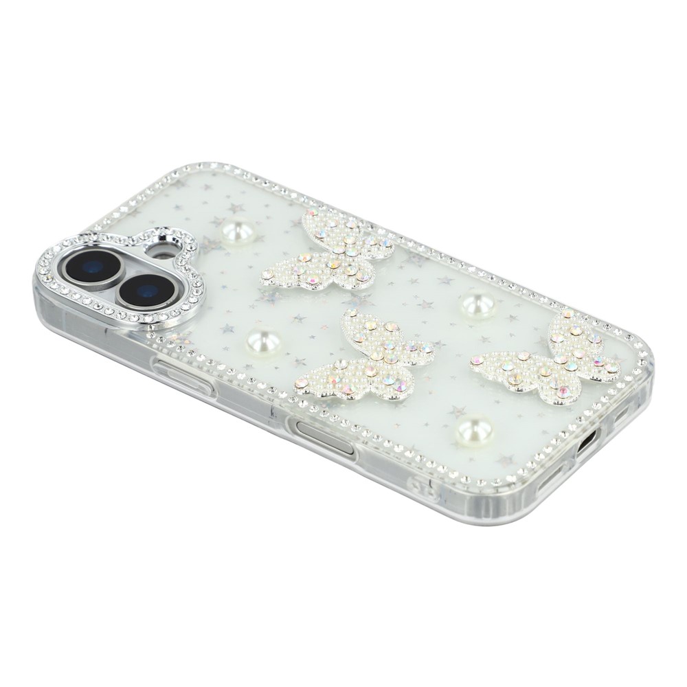 - Sparkling Design Features rhinestone detailing around the frame and camera, complemented by pearl butterfly bow decor for a stylish, eye-catching look