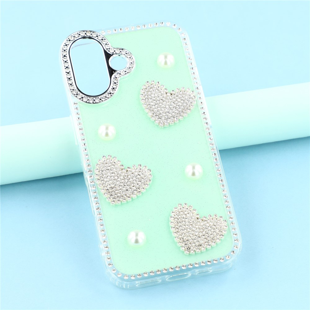- Sparkling Design Features rhinestone detailing around the frame and camera, complemented by a pearl love decor back for a stylish, eye-catching look