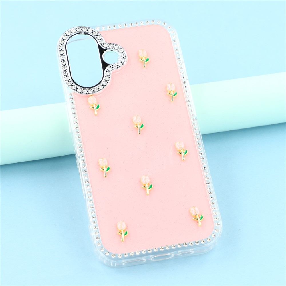 - Sparkling Design Features rhinestone detailing around the frame and camera, complemented by a small tulips decor back for a stylish, eye-catching look