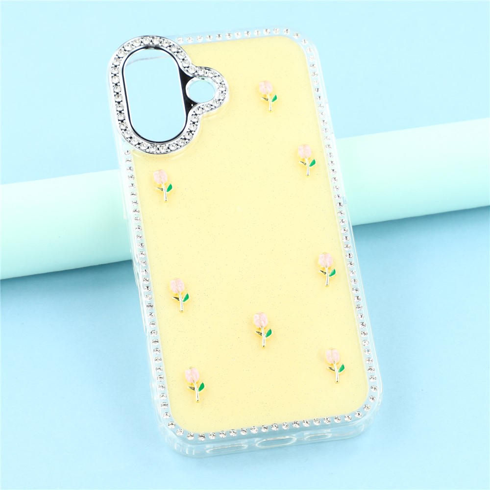 - Sparkling Design Features rhinestone detailing around the frame and camera, complemented by a small tulips decor back for a stylish, eye-catching look