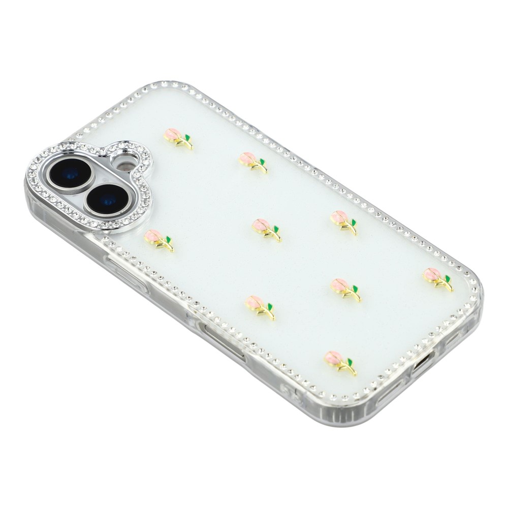 - Sparkling Design Features rhinestone detailing around the frame and camera, complemented by a small tulips decor back for a stylish, eye-catching look
