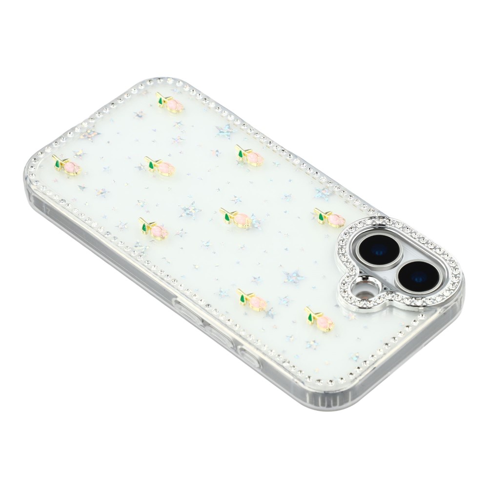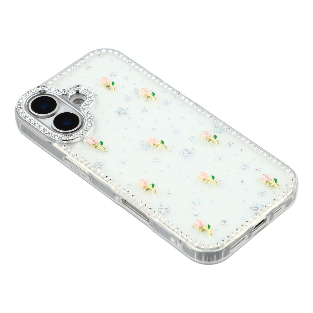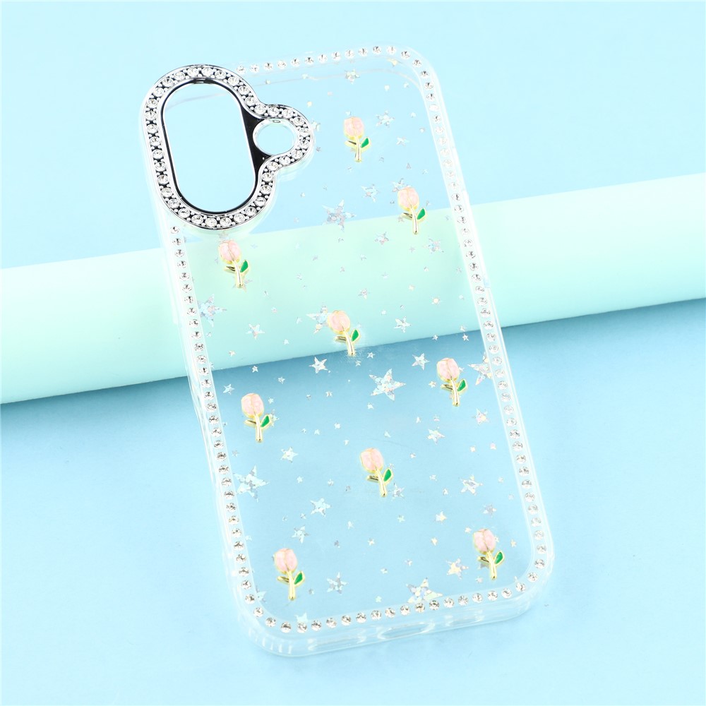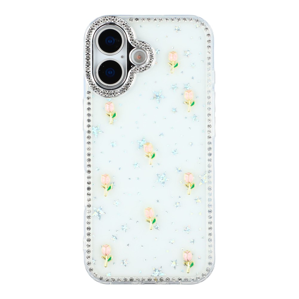 - Sparkling Design Features rhinestone detailing around the frame and camera, complemented by a small tulips decor back for a stylish, eye-catching look
