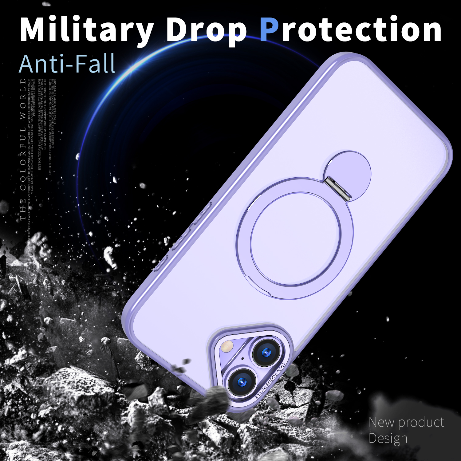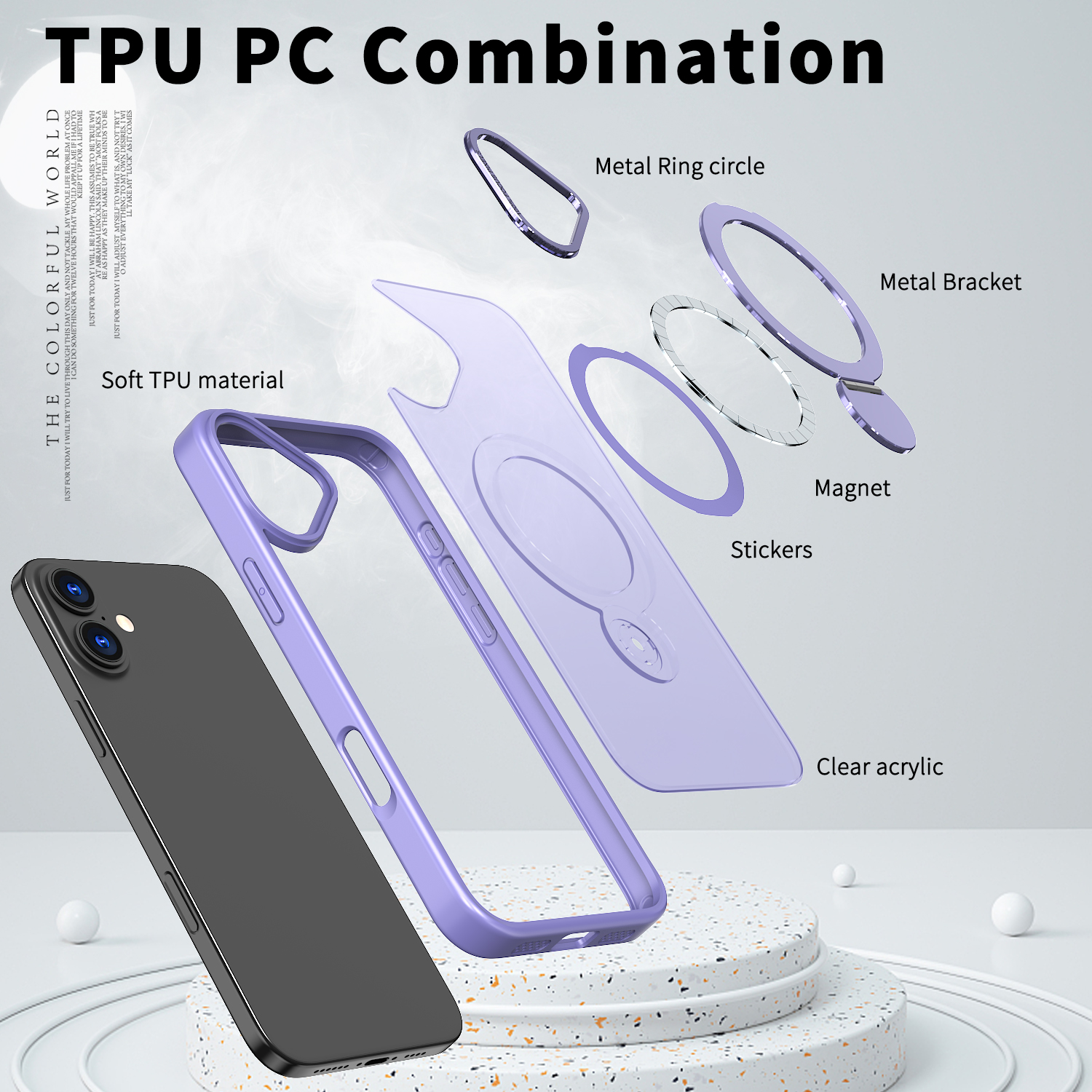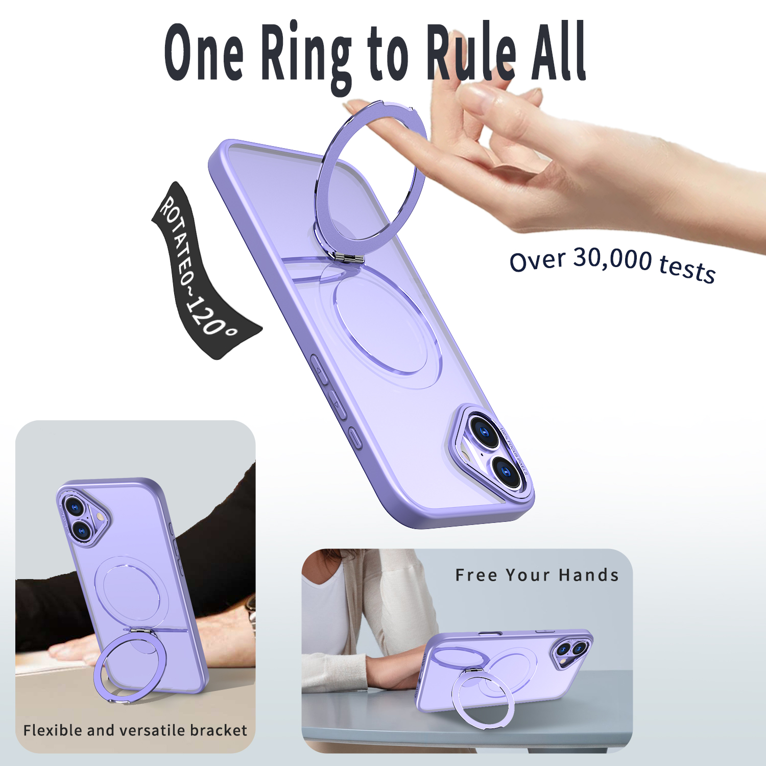 For iPhone 16 Case Rotating Kickstand Skin-touch TPU + PC Phone Cover Compatible with MagSafe – Lilac Purple