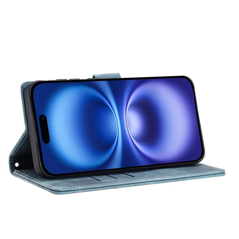 For iPhone 16 Case with 2Pcs Tempered Glass WANLONFENG MTL Series Mandala Leather Phone Cover – Blue