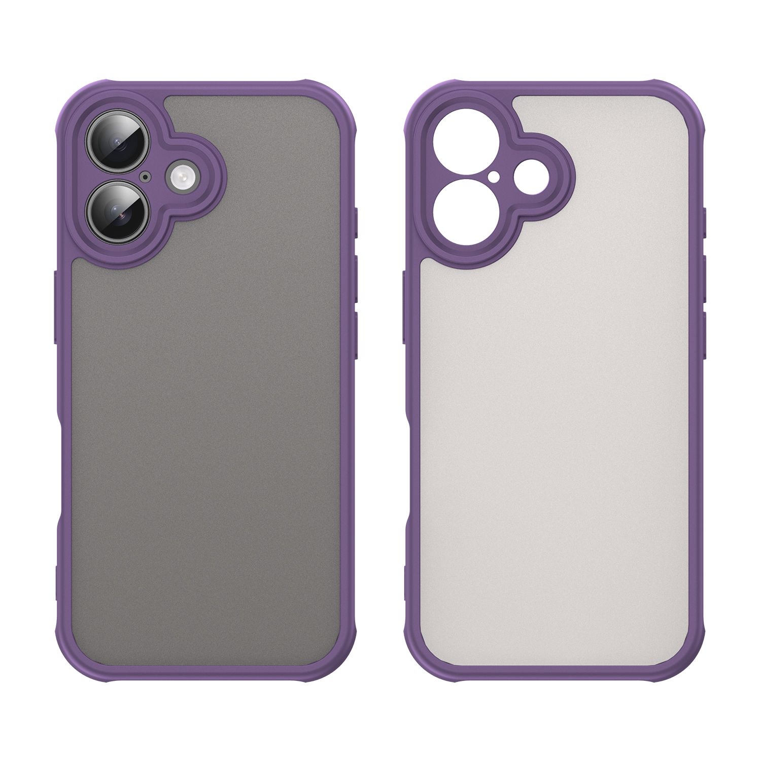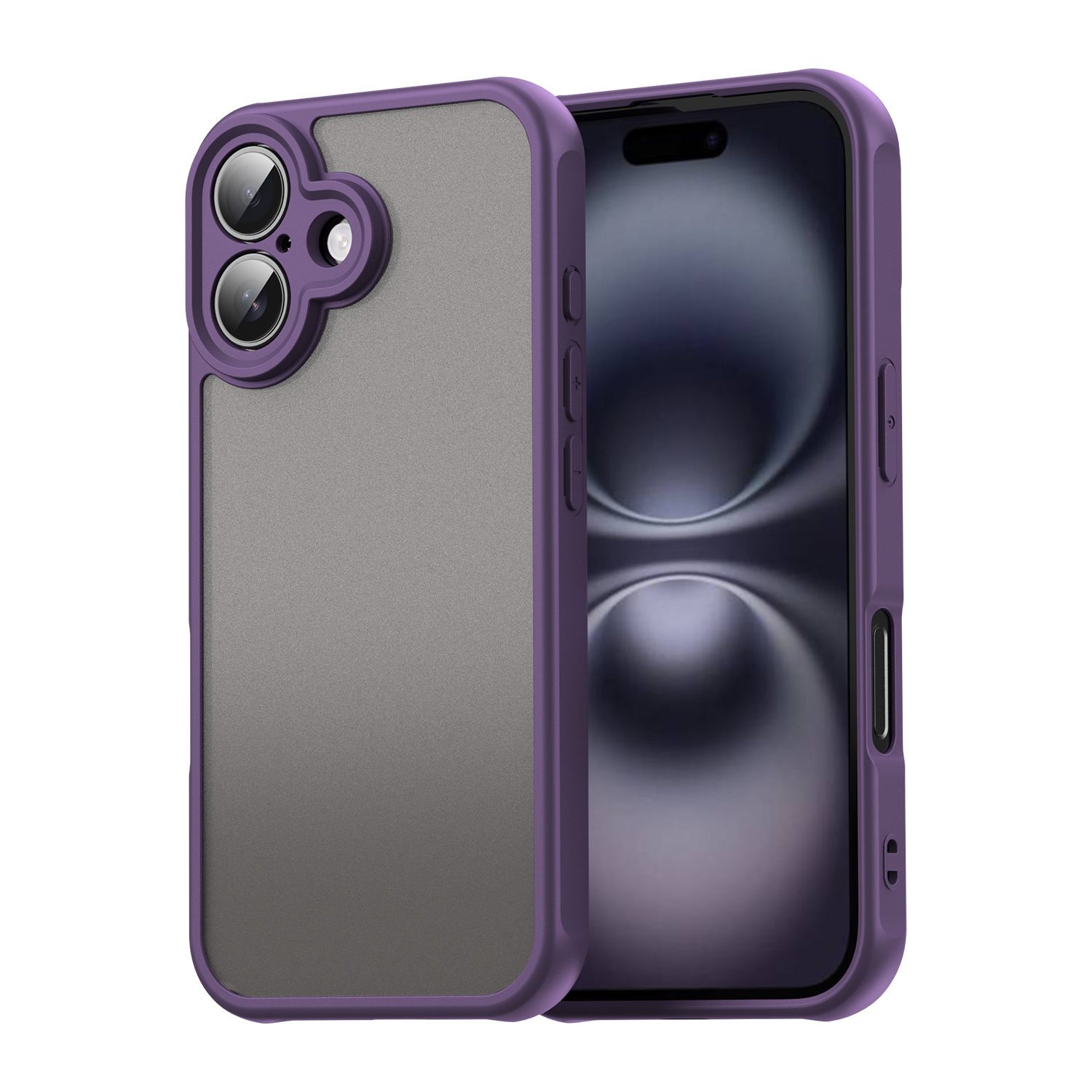 For iPhone 16 Case with Screen Film WANLONFENG FD Series Skin Touch TPU PC Phone Back Cover - Purple $15.29