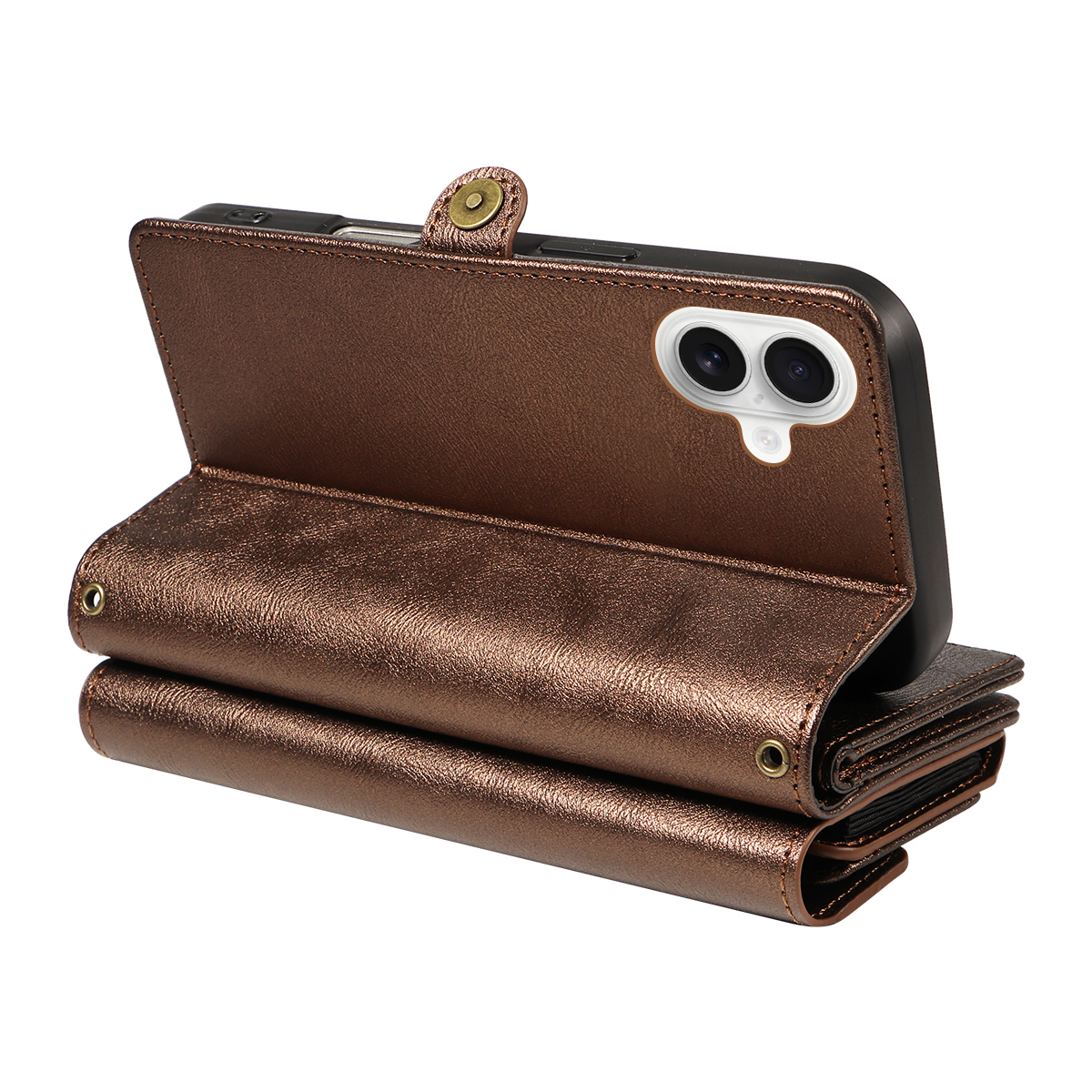 For iPhone 16 Case YIKATU YK-008 Zipper Wallet Leather Phone Cover with Shoulder Strap – Brown