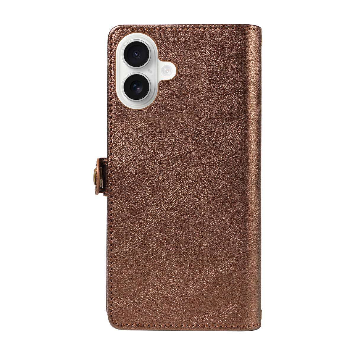 For iPhone 16 Case YIKATU YK-008 Zipper Wallet Leather Phone Cover with Shoulder Strap - Brown