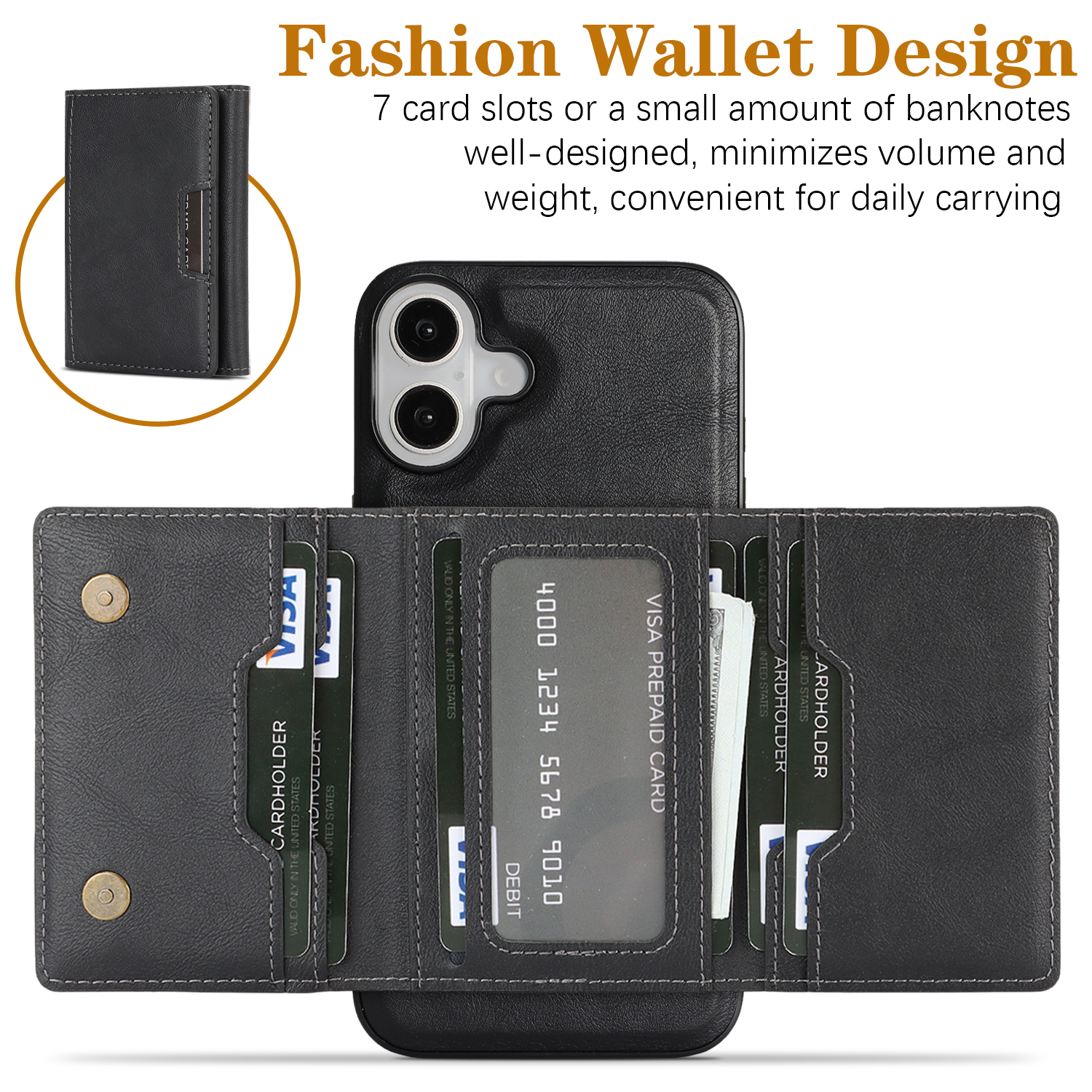 - MagSafe Compatible Supports for MagSafe accessories and wireless charging, featuring a minimalist magnetic leather bi-fold design with card holder functionality.