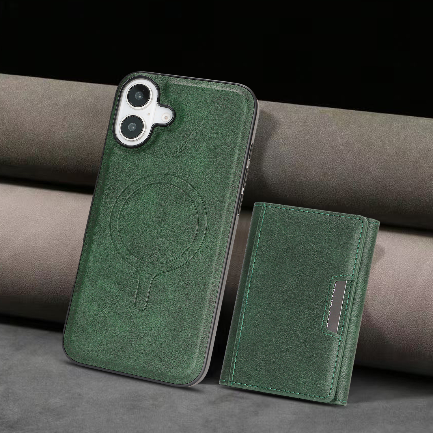 • MagSafe Compatible Supports for MagSafe accessories and wireless charging, featuring a minimalist magnetic leather bi-fold design with card holder functionality.