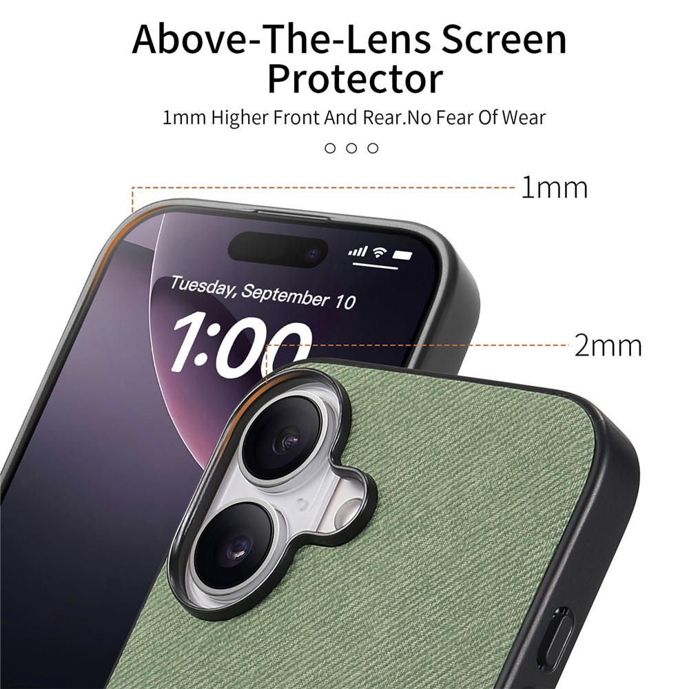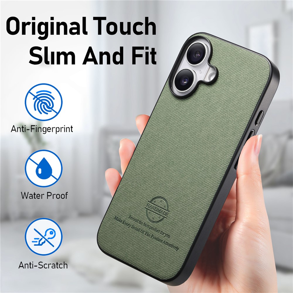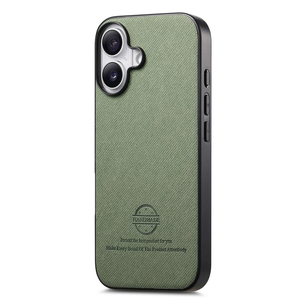 For iPhone 16 Leather Phone Back Cover with Cloth Texture – Green