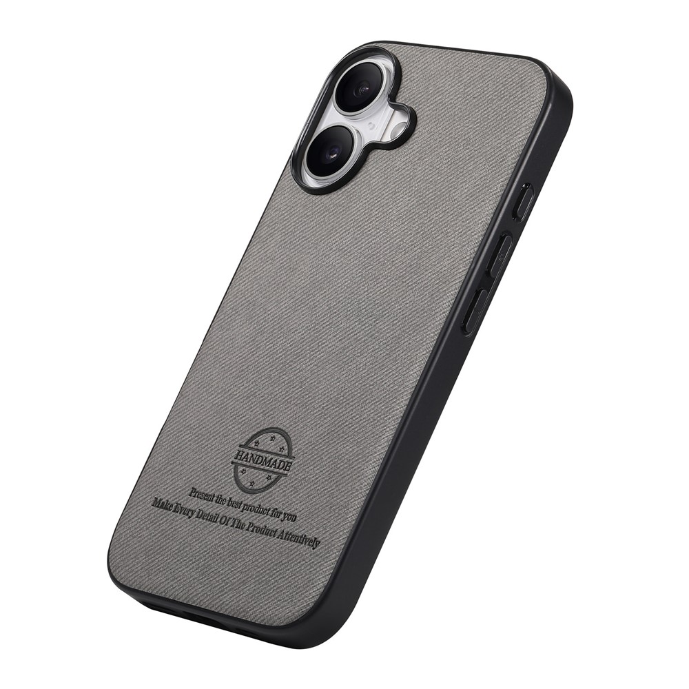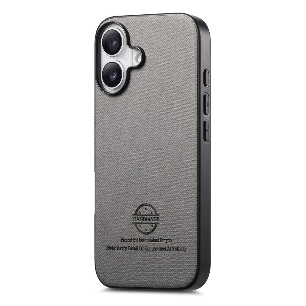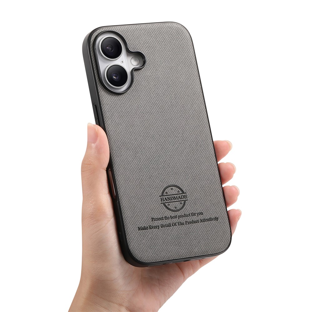 For iPhone 16 Leather Phone Back Cover with Cloth Texture – Grey