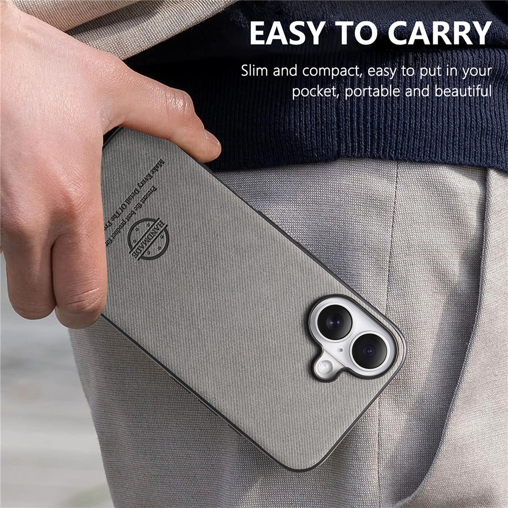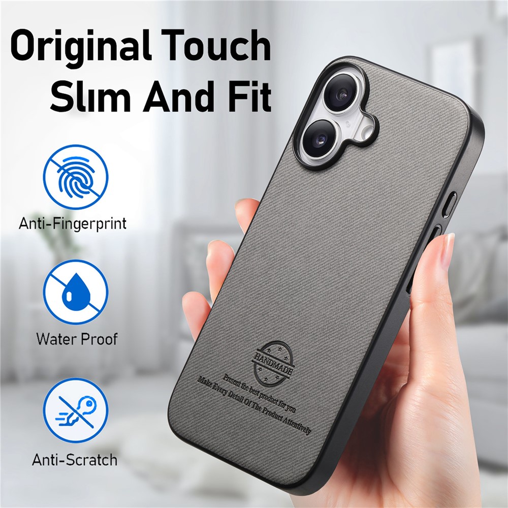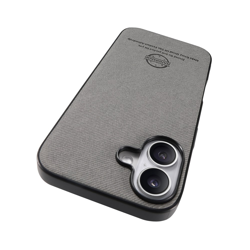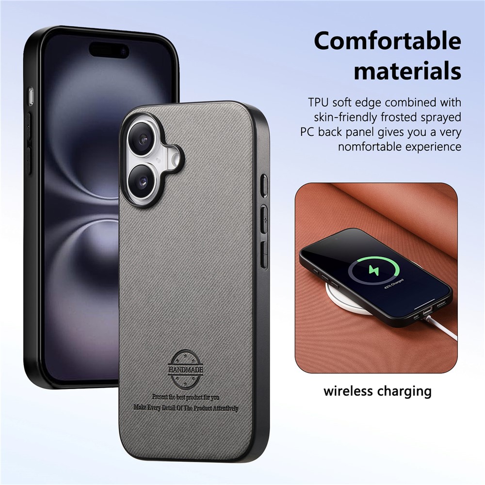For iPhone 16 Leather Phone Back Cover with Cloth Texture – Grey