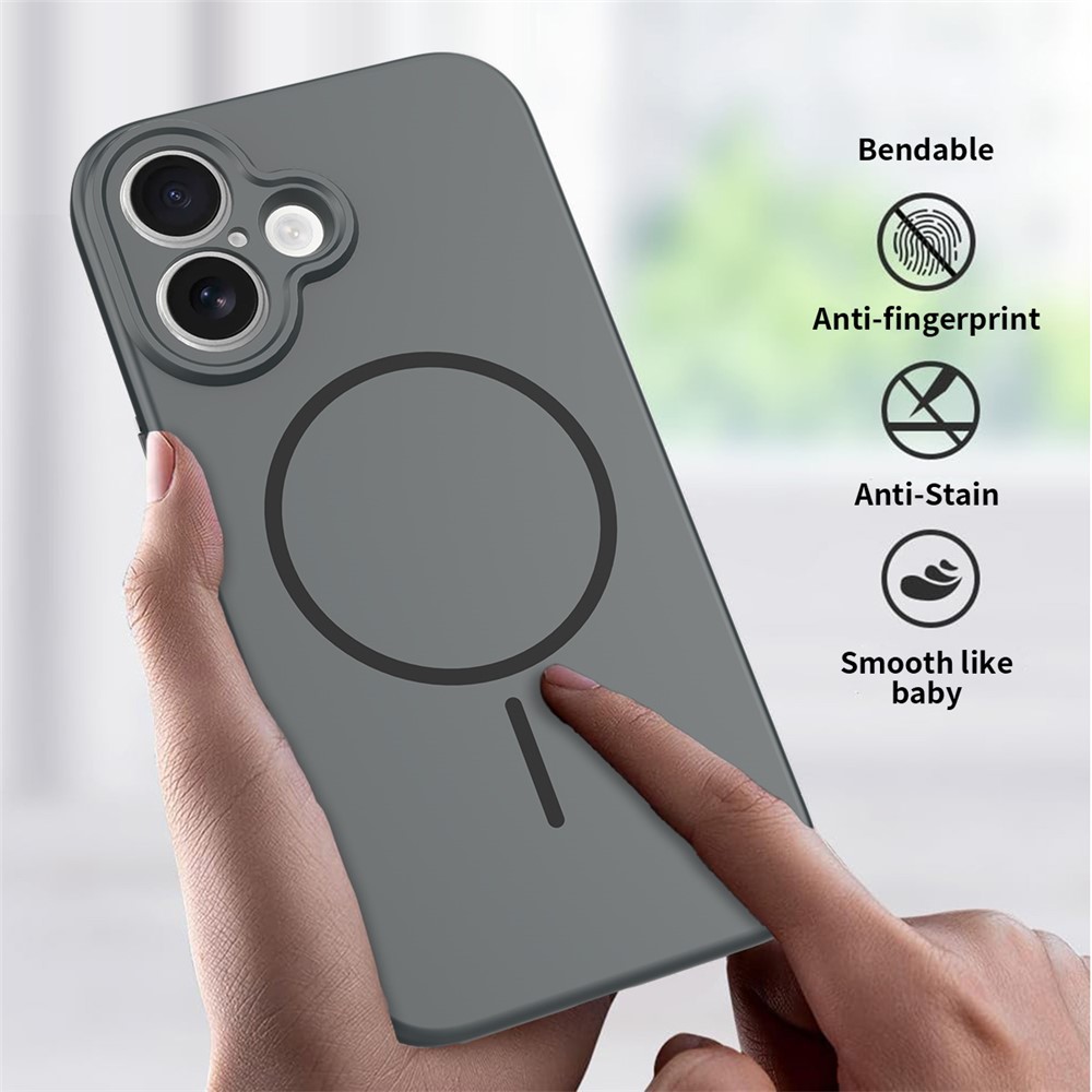 For iPhone 16 Magnetic Case PC + TPU Phone Cover with Tempered Glass Screen Film – Dark Grey