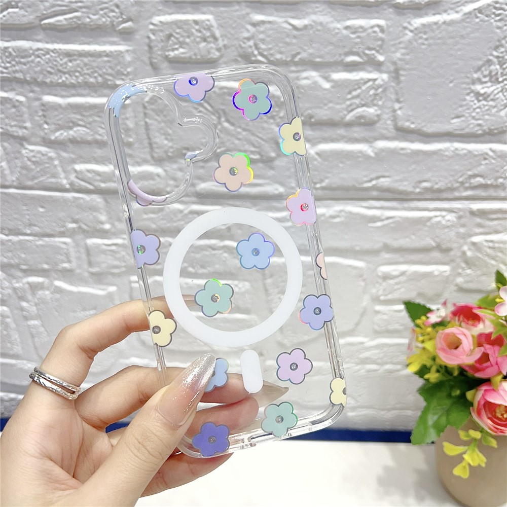 - Charming Laser Flower Design Features holographic floral patterns with delicate rhinestone accents that shimmer under light, adding a playful yet elegant touch.