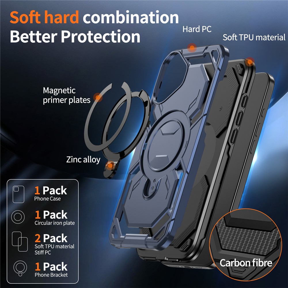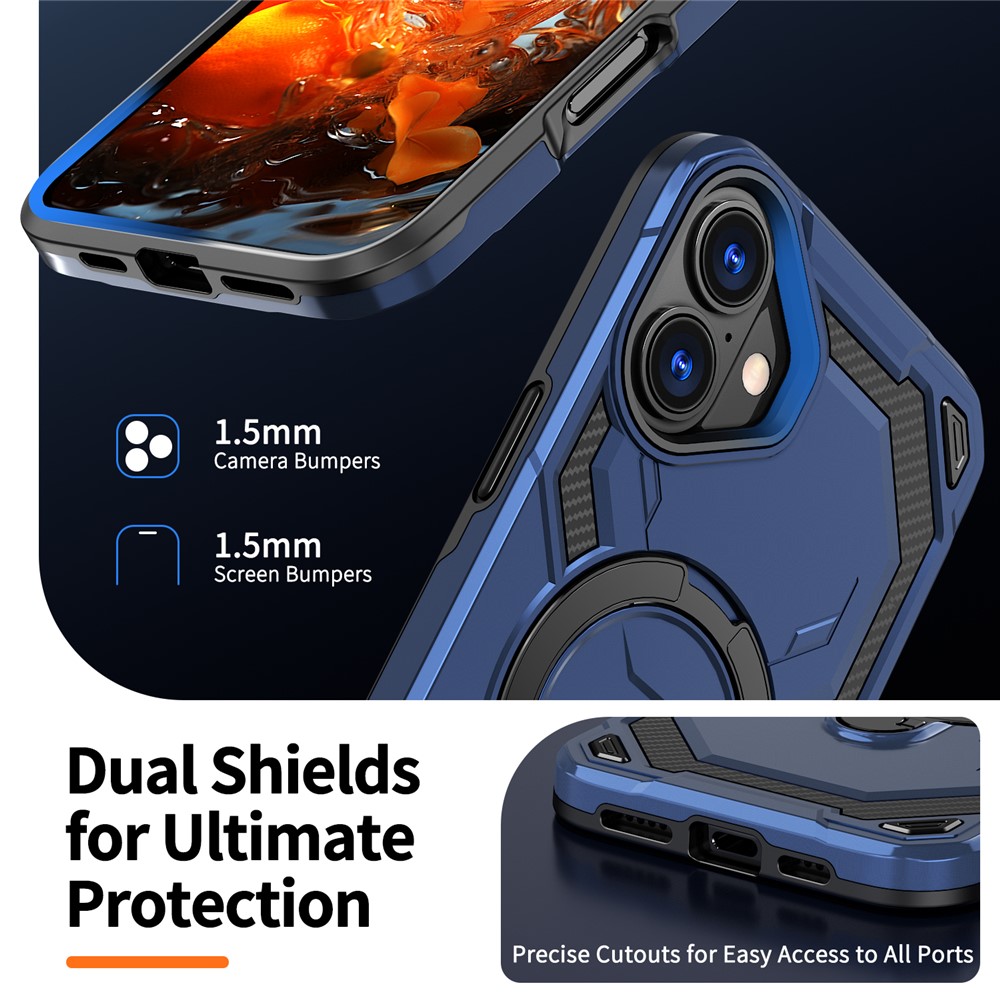 • Magnetic Ring Kickstand Features a magnetic ring kickstand for easy one-handed operation and doubles as a convenient phone kickstand for desktop or in-car use, enhancing versatility.