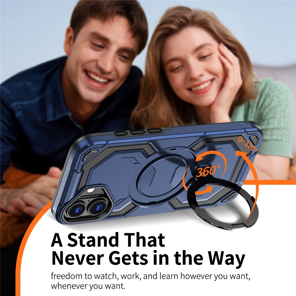 For iPhone 16 Magnetic Case Ring Kickstand PC + TPU Hybrid Phone Cover - Blue $15.46