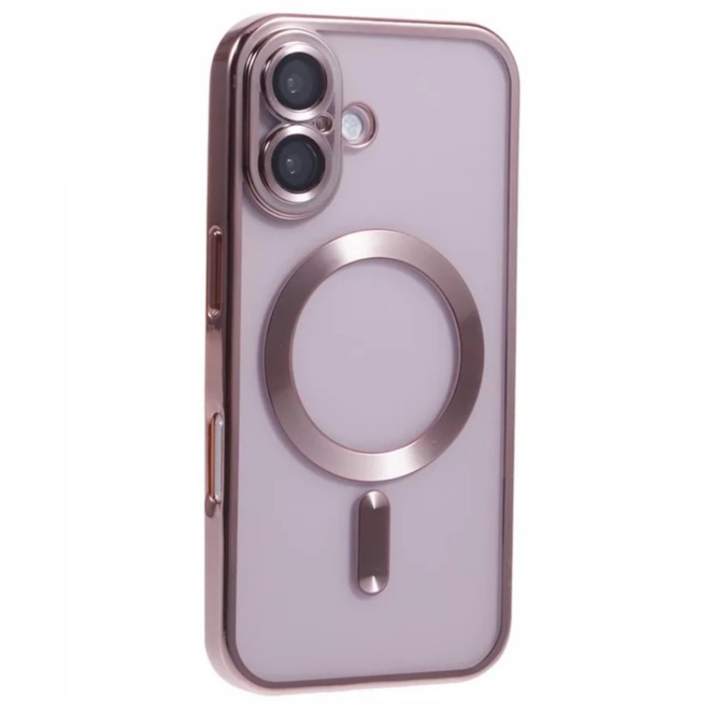 For iPhone 16 Magnetic Case WANLONFENG Full Protection Electroplated TPU Cover with Tempered Glass – Pink
