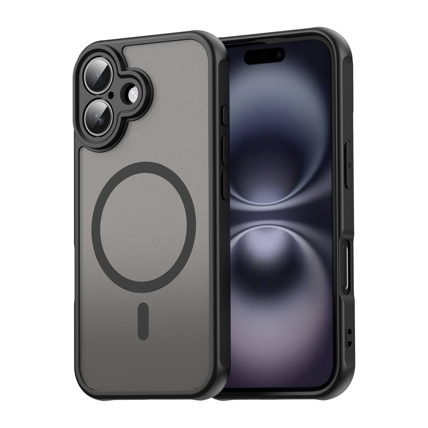 For iPhone 16 Magnetic Case with Screen Film WANLONFENG FD Series Skin Touch TPU + PC Phone Back Cover – Black
