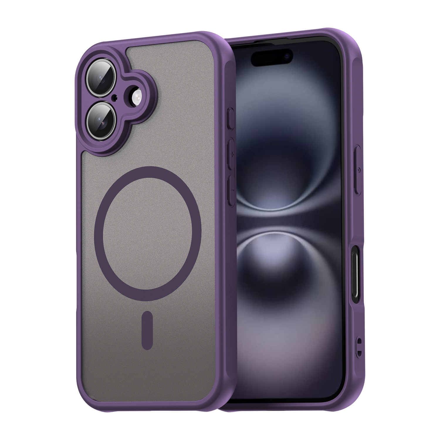 For iPhone 16 Magnetic Case with Screen Film WANLONFENG FD Series Skin Touch TPU + PC Phone Back Cover - Purple