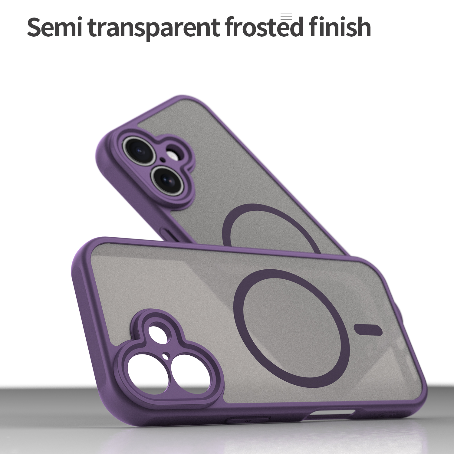 For iPhone 16 Magnetic Case with Screen Film WANLONFENG FD Series Skin Touch TPU + PC Phone Back Cover - Purple $16.55