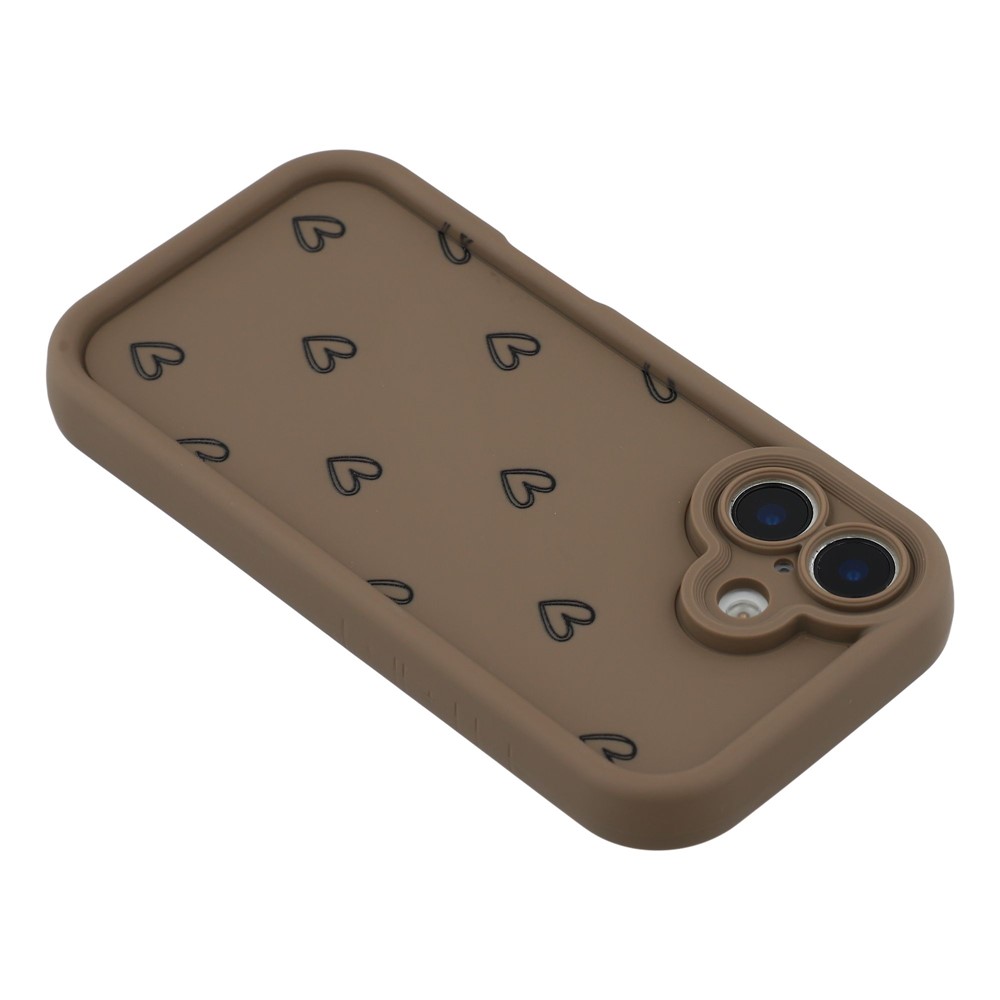 For iPhone 16 Phone Case Heart Pattern TPU Shockproof Protective Cover – Brown