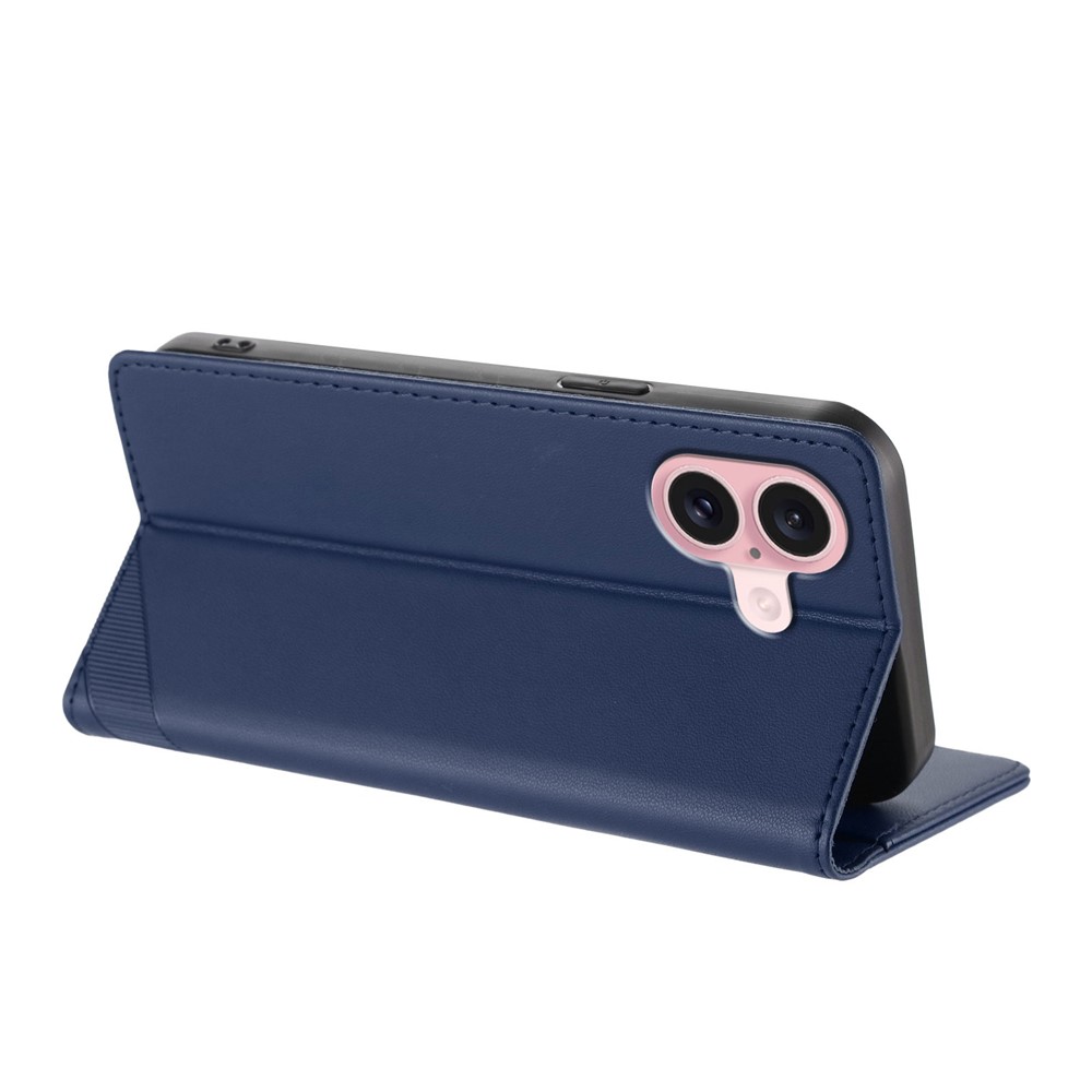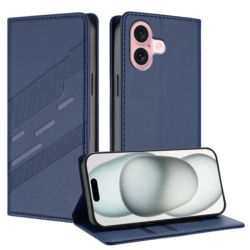 For iPhone 16 Phone Cases Punk Style Imprinted Wallet Stand Leather Cover – Dark Blue