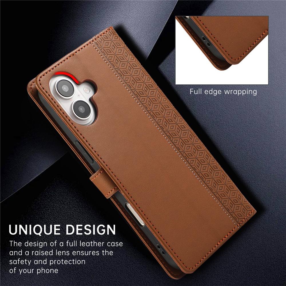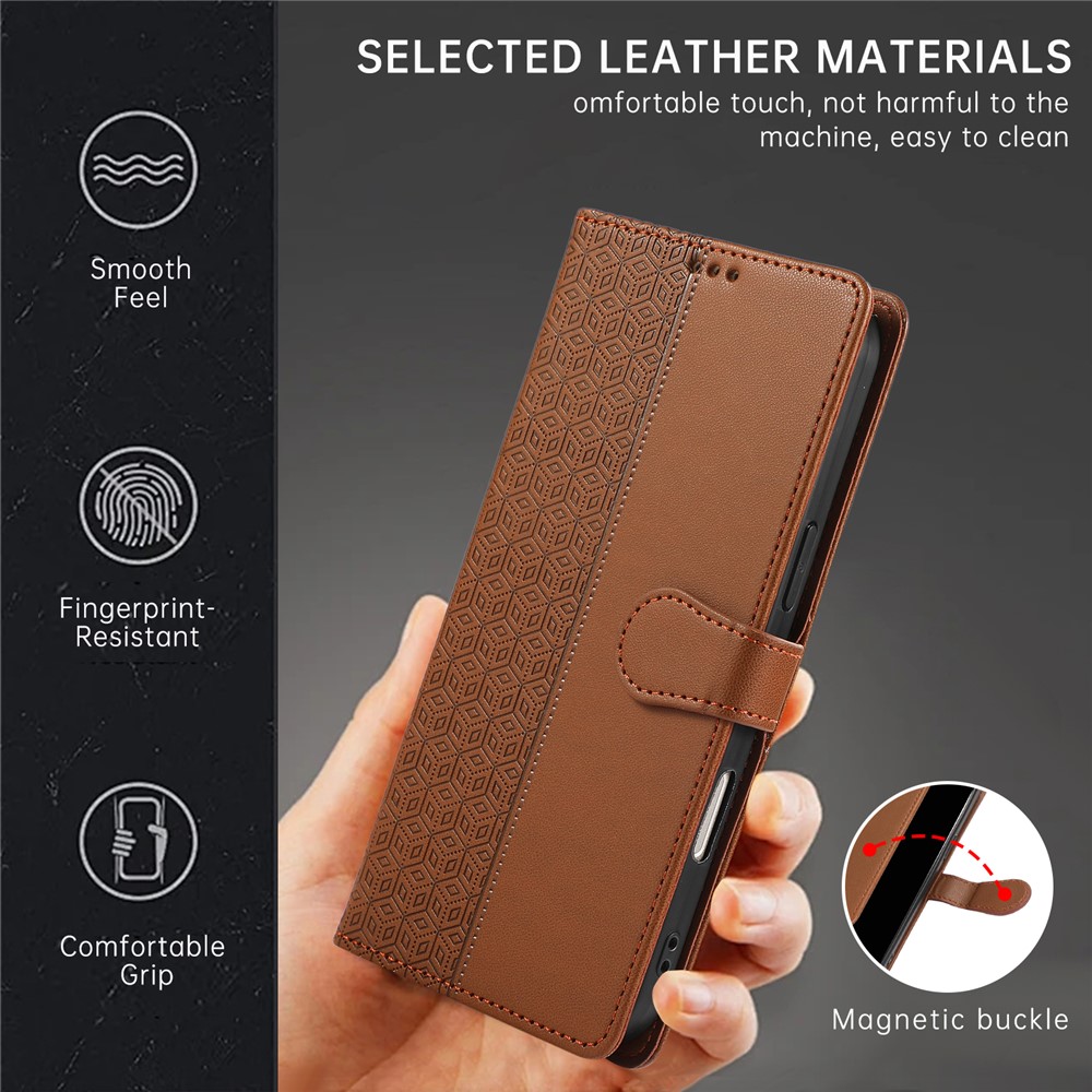 - Stylish Rhombus Design & Premium Material Features a splicing imprinted rhombus pattern, crafted from high-quality PU leather and durable TPU, combining elegance with long-lasting durability.