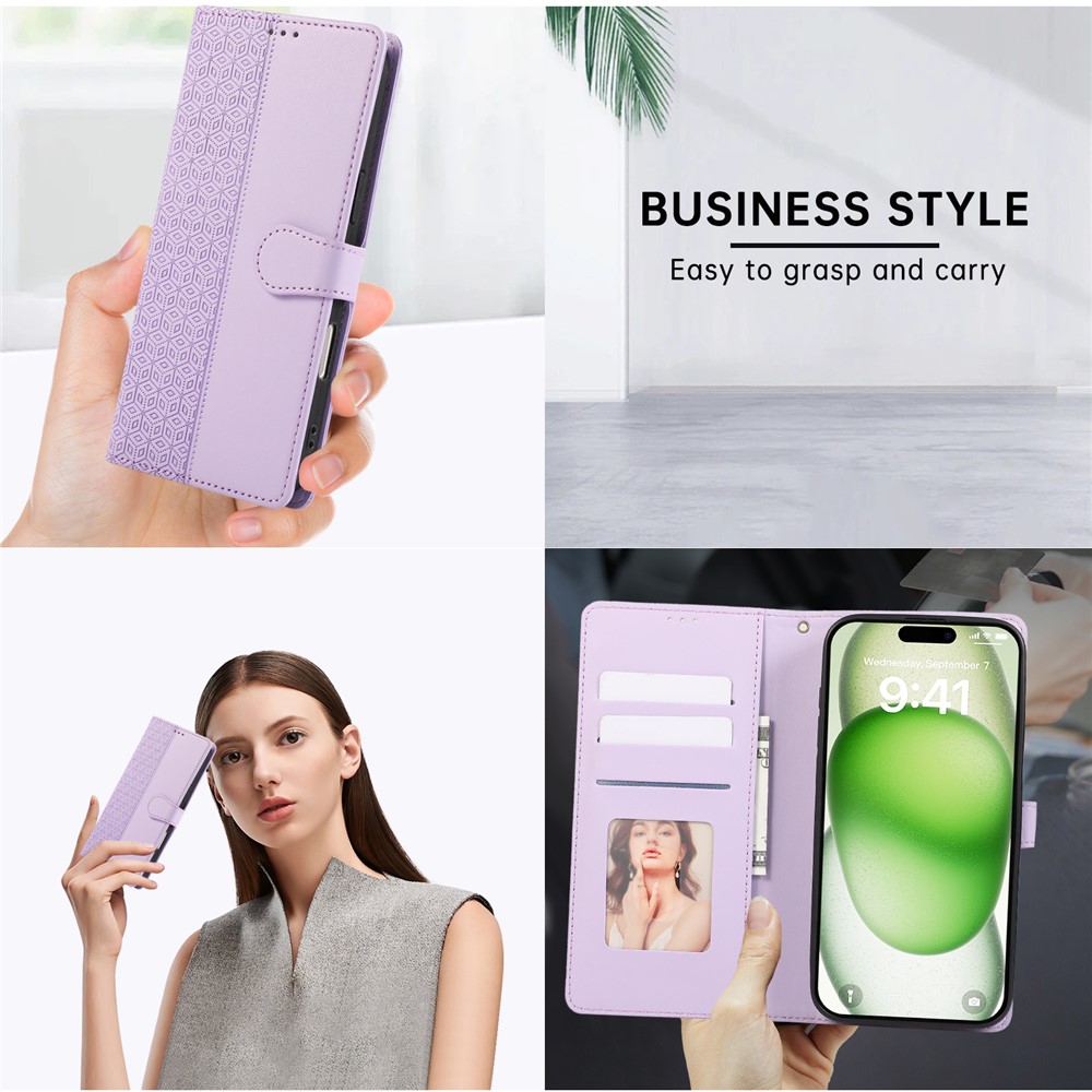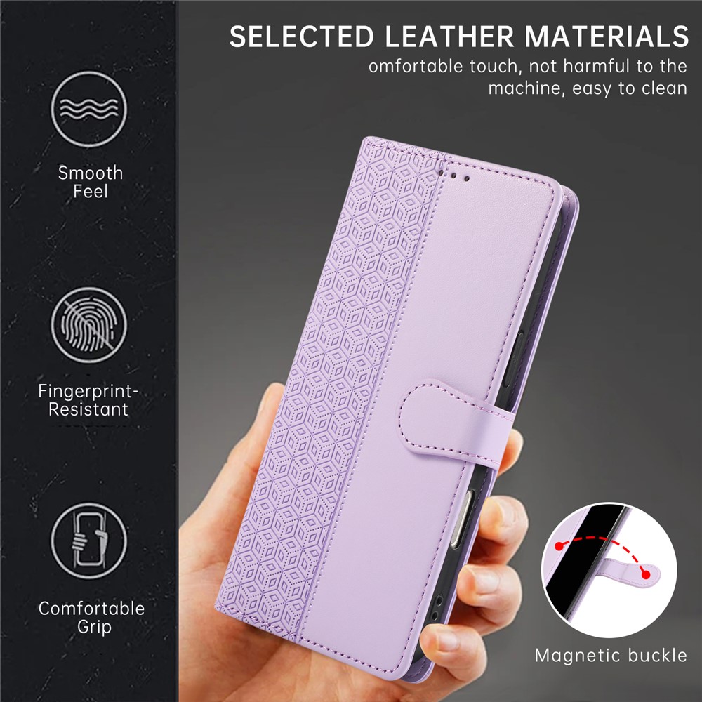 - Stylish Rhombus Design & Premium Material Features a splicing imprinted rhombus pattern, crafted from high-quality PU leather and durable TPU, combining elegance with long-lasting durability.