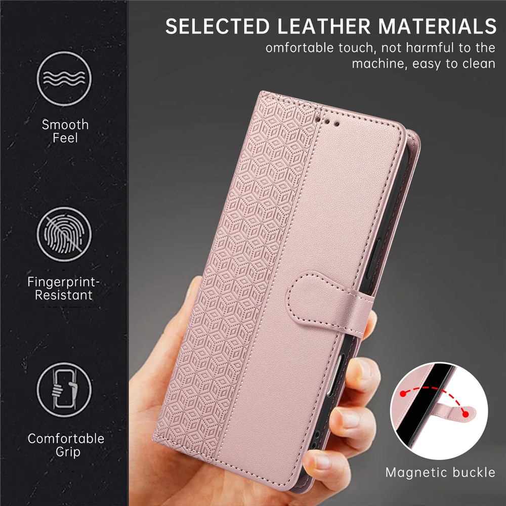- Stylish Rhombus Design & Premium Material Features a splicing imprinted rhombus pattern, crafted from high-quality PU leather and durable TPU, combining elegance with long-lasting durability.