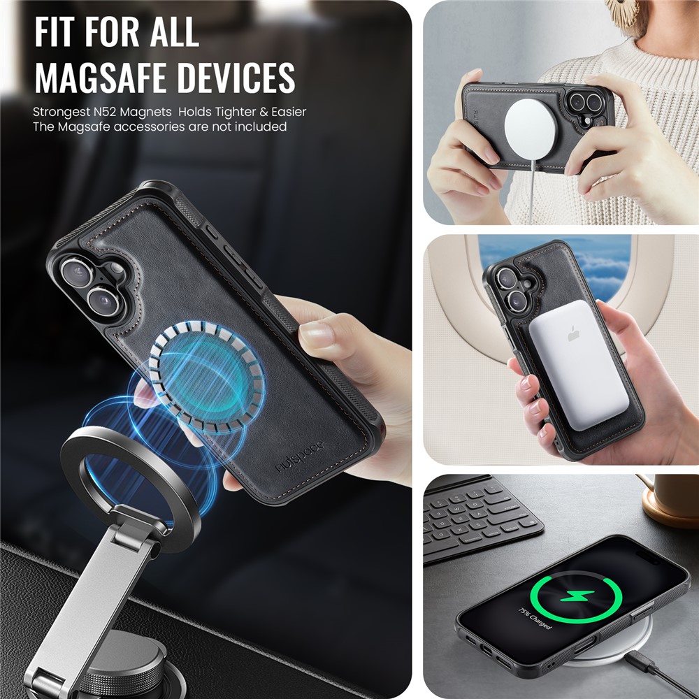 - Compatible with MagSafe The Leather phone back cover built-in magnetic ring, when taking off the card bag, it can be compatible with MagSafe