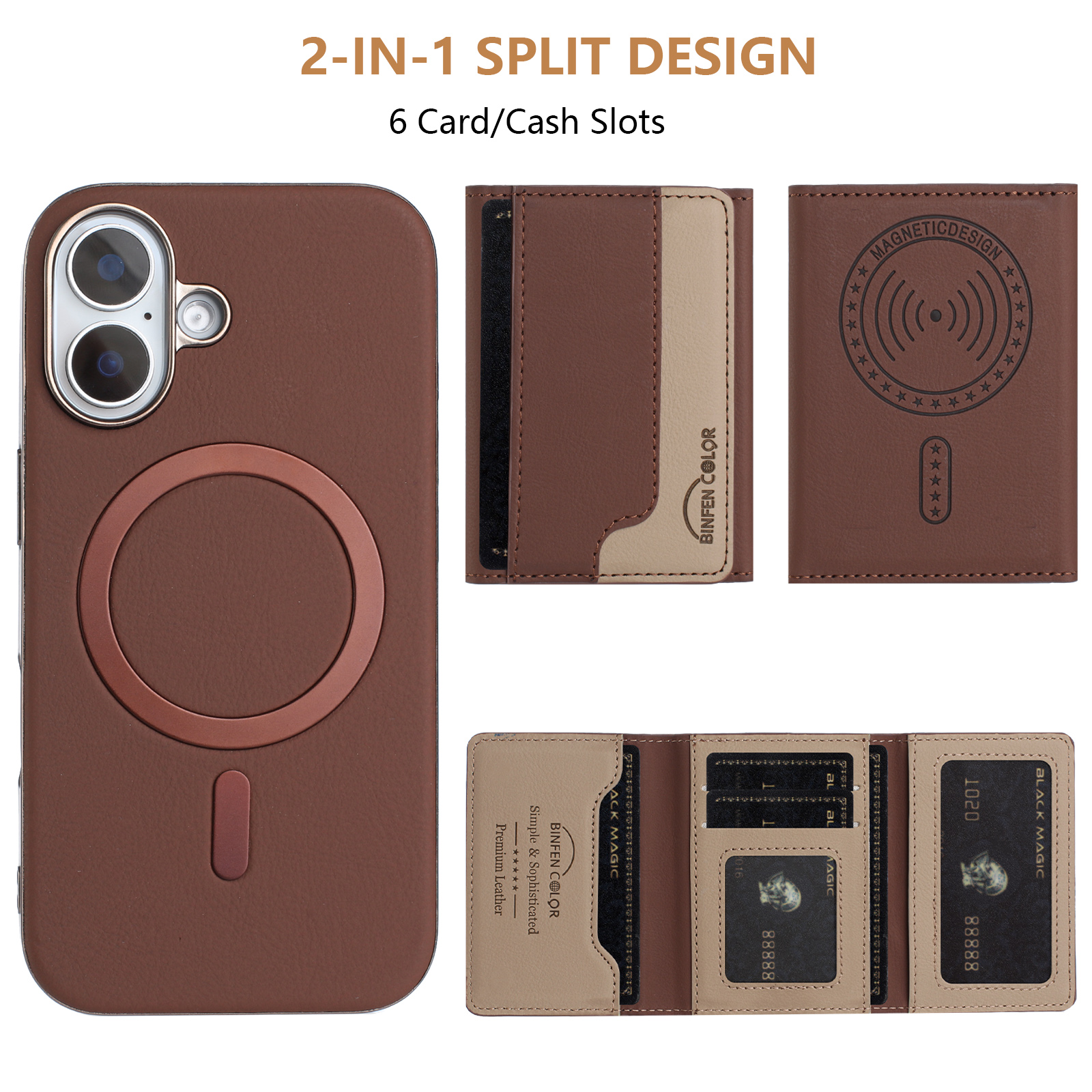 - Strong Magnetic Attachment The phone case and card holder are connected by powerful magnets, ensuring that the card holder stays firmly in place without the risk of falling off during use
