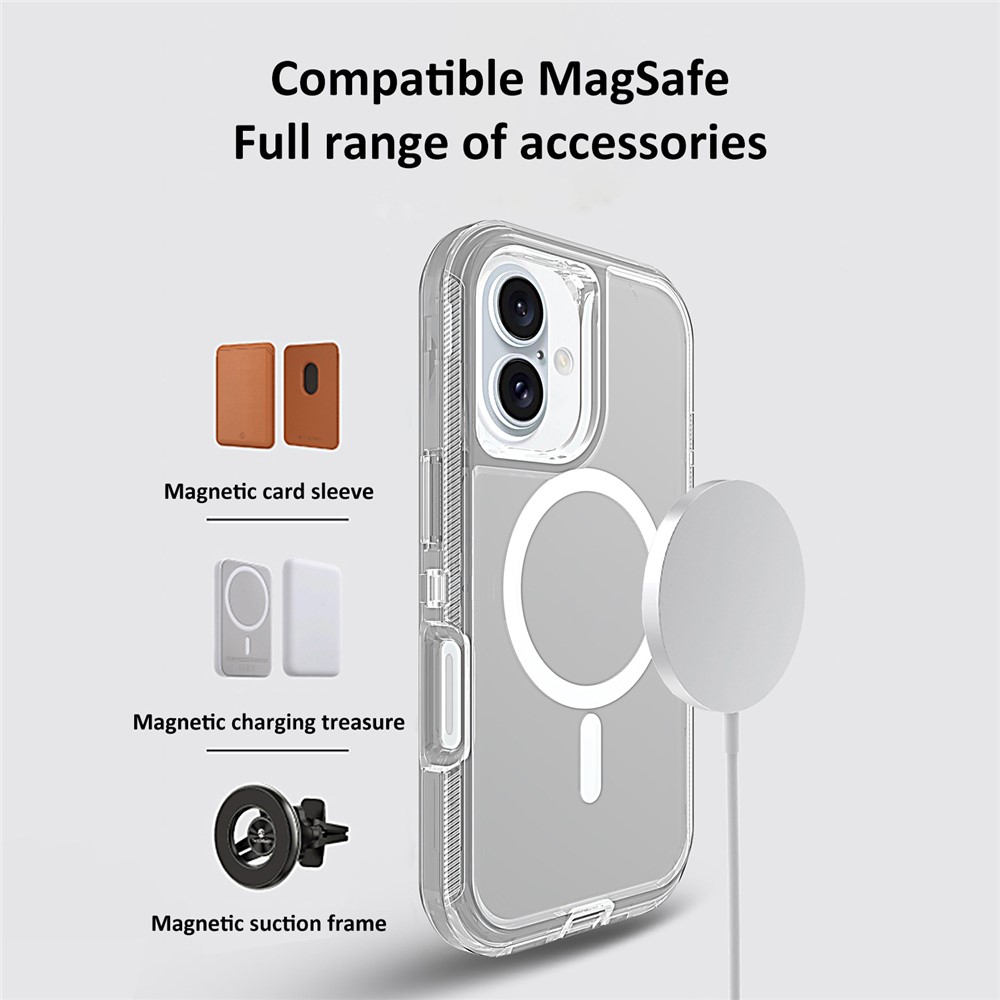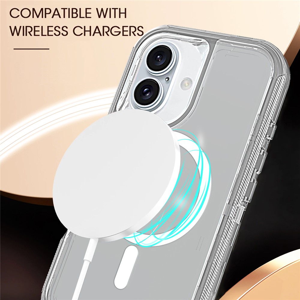 • For iPhone 16 Plus Case Compatible with MagSafe Shockproof TPU + PC Phone Back Cover - Transparent