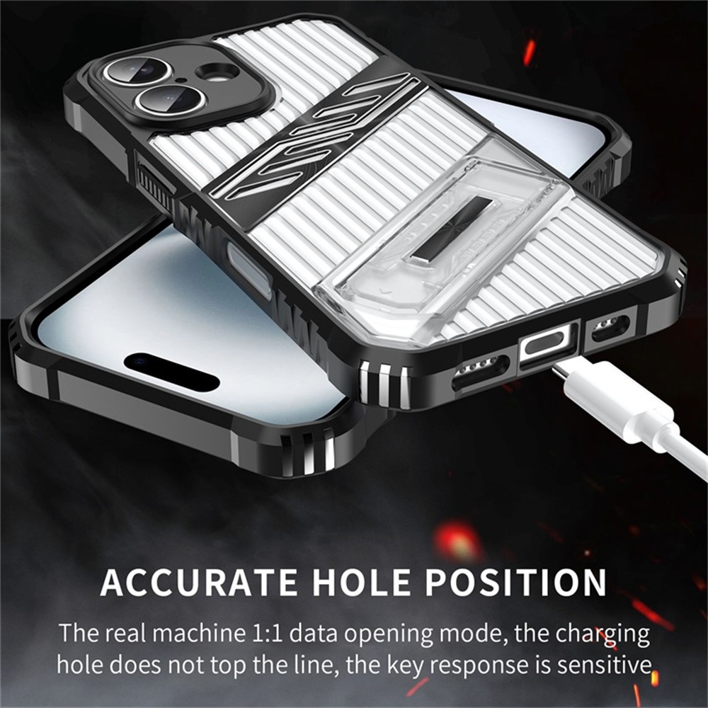 • For iPhone 16 Plus Case Folding Kickstand PC + TPU Anti Drop Phone Cover - Black  /  Grey